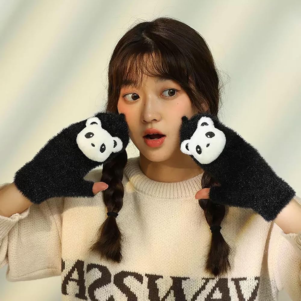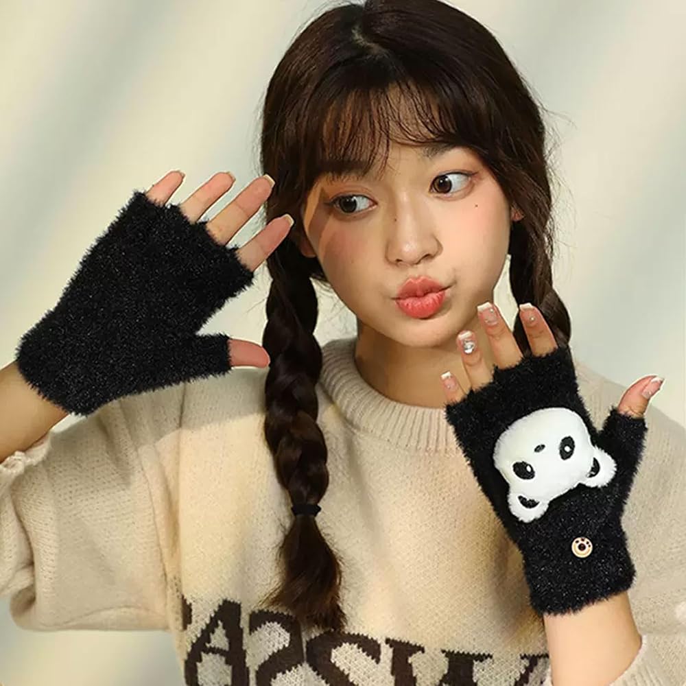 Panda flip half finger gloves : Windproof and warm, not easy to deform, skin-friendly and comfortable. Super soft plush, delicate, skin-friendly, elastic, safe and odorless, care for your hands in cold winter.