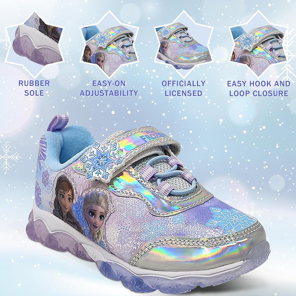 - PRINCESS LIGHT-UP MAGIC: حذاء رياضي مضيء للفتيات من Disney Frozen باللون الأرجواني/الأزرق، مصمم للأطفال الصغار والصغار، ويتميز بتصميم مضيء مبهر يناسب الملوك.