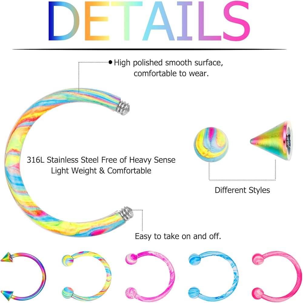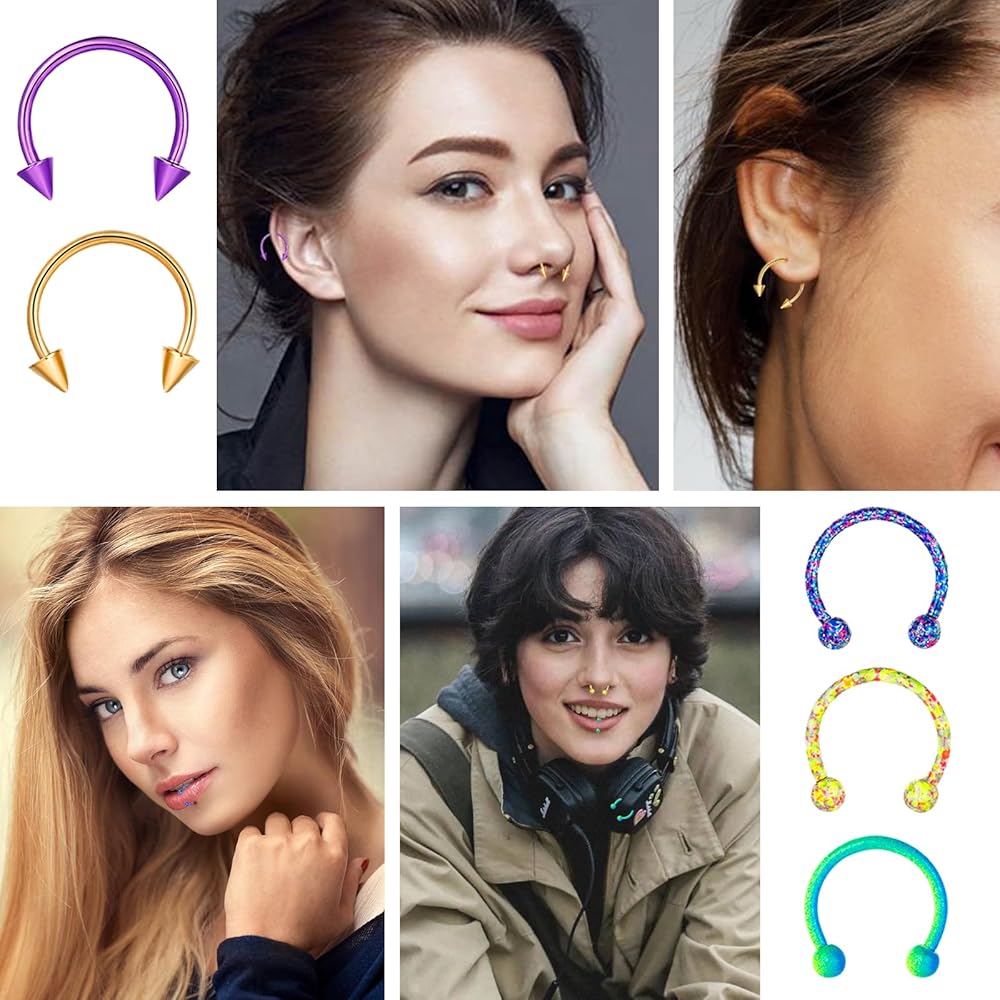 استخدامات متعددة - يمكن ارتداء حلقة الحاجز الأنفية المصنوعة من الستانلس ستيل هذه كحلقة للشفاه للنساء، مجوهرات ثقب الشفاه، مجوهرات ثقب الأنف، أقراط من الستيل الجراحي، أقراط غضروف نصف حلقة، ثقب الأذن، حلقة حلزونية، أقراط زنمة، حلقة أنف بلون زهري نيون، مجوهرات ثقب حلزونية، أقراط على شكل حدوة حصان، مجوهرات حاجز الأنف وغيرها من مجوهرات ثقب الجسم للنساء والرجال.