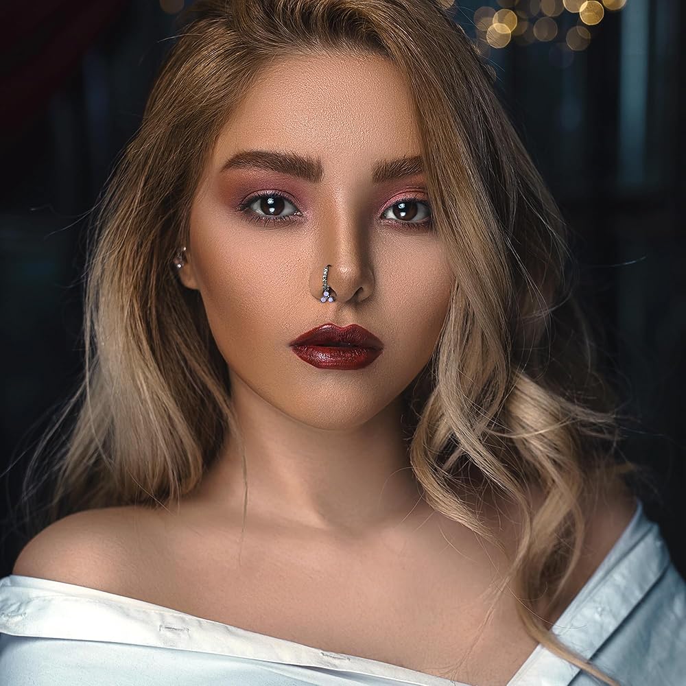 • سمك شريط حلقات الأنف: 20 مقياس (0.8 مم)، طول شريط حلقات الأنف: 7 مم، قطر حلقة الأنف: 8 مم، مقاس قياسي للنساء والرجال، صغير ورائع، سهل الارتداء أو تقلع.