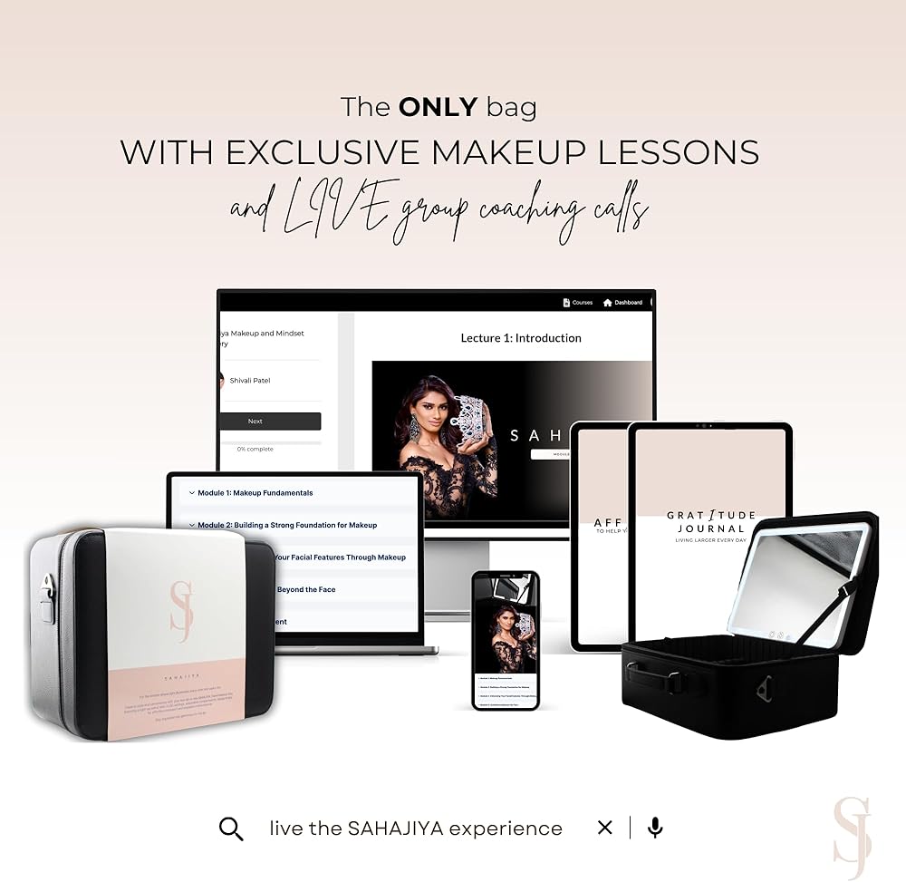 هدية مثالية لعشاق المكياج: سواء كانت لك أو لصديقتك أو زوجتك أو والدتك أو أختك أو صديقتك، فإن حقيبة المكياج هذه المزودة بمرآة مضيئة تمثل الهدية المثالية لأي عشاق المكياج لأنها تأتي مع دروس مكياج حصرية ومكالمات تدريب جماعية مباشرة مع ميس سوبراناشيونال يو اس ايه 2021، شيفالي باتيل. لا تشتري منظمًا فحسب. عش تجربة الثقة بمعرفة كيفية استخدام ما يوجد في صندوقك لتعزيز ميزاتك الطبيعية حقًا.