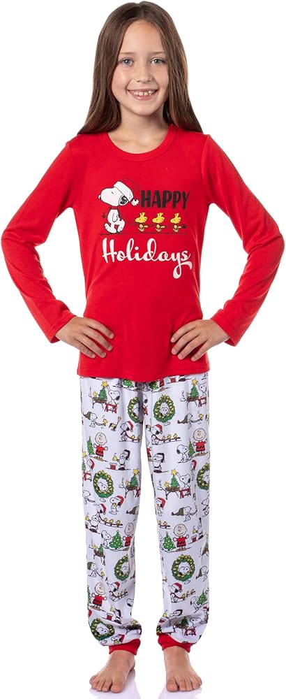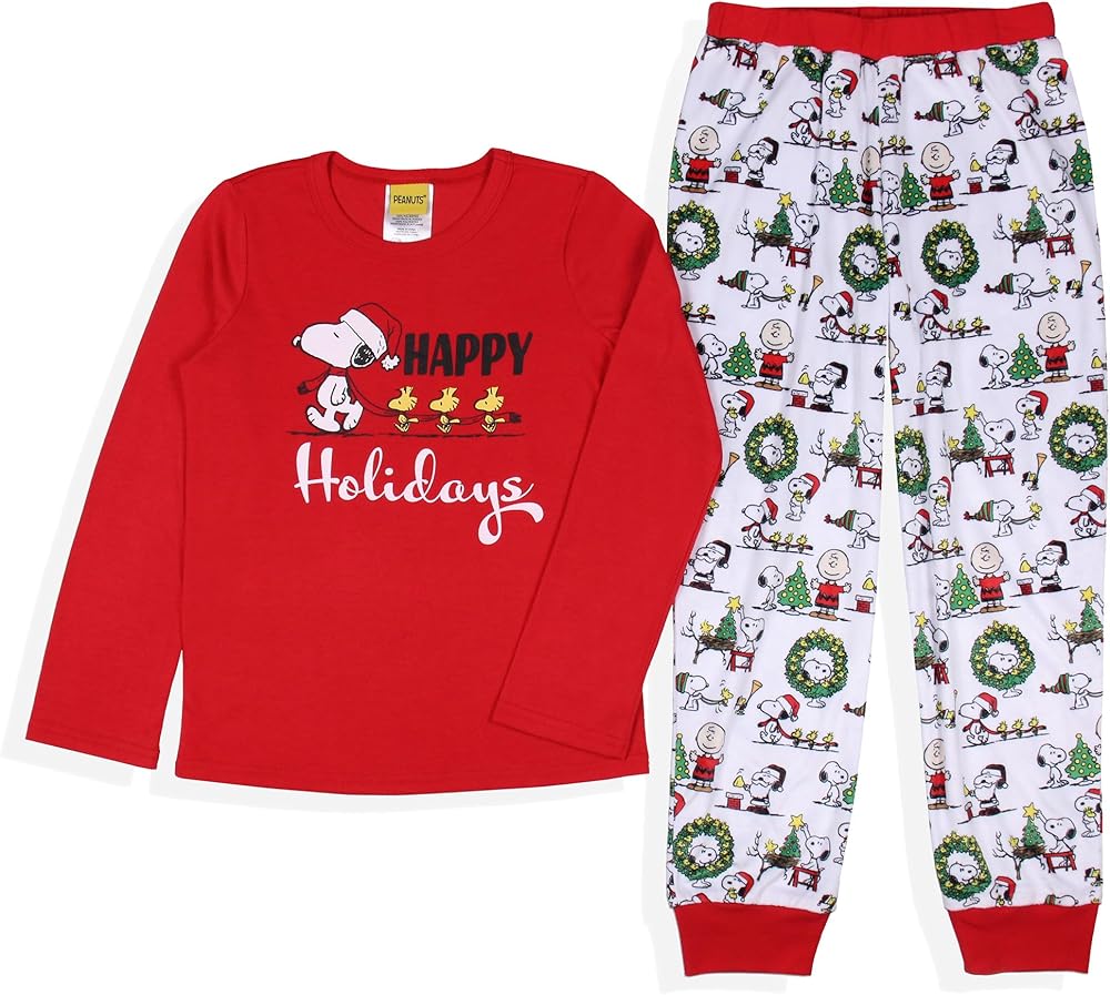 In 1950 Charles M. Schulz introduced a clever comic strip about a young boy named Charlie Brown and Snoopy, the coolest Beagle dog around, along with great characters like Lucy, Linus Van Pelt, Patty Peppermint, Pigpen, and more! Soon the comic strip spawned multiple hit cartoons, like A Charlie Brown Christmas, It's The Great Pumpkin, Charlie Brown, Charlie Brown's All-Stars, and, Be My Valentine, Charlie Brown. Our "Peanuts" pajama wear is well-known for its comfy yet stylish fit. The soft fabric allows your little one to rest in the design of their favorite characters from the series--characters like Charlie Brown, Woodstock, and Snoopy, in a fun Christmas theme. Charlie Brown, Snoopy, and Woodstock are seen in a tossed print getting ready for the Holidays, with wreathes, Santa hats, and Christmas trees! The whole set is made of an ultra-soft 100% polyester fabric blend for a lightweight feel and comfortable wear.