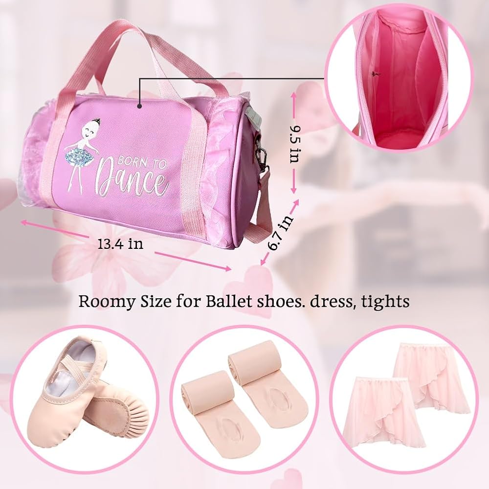 حقيبة عصرية وأنيقة - حقيبة كبيرة توتس للفتيات حقيبة رقص مثالية لكل باليرينا تحتوي على جزء مزدوج الطبقات، وحزام قابل للتعديل، وتصميم بسحاب صغير لتخزين وحمل أحذية الباليه، وفستان الباليه، وأزياء الرقص والمناشف والملحقات بشكل أنيق