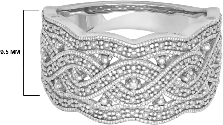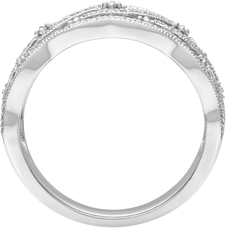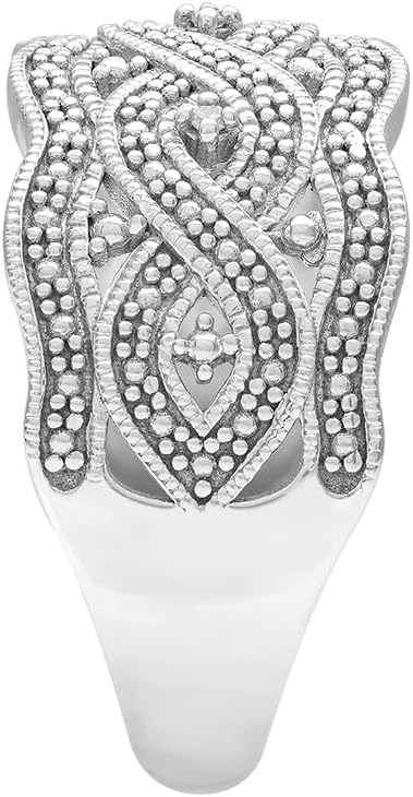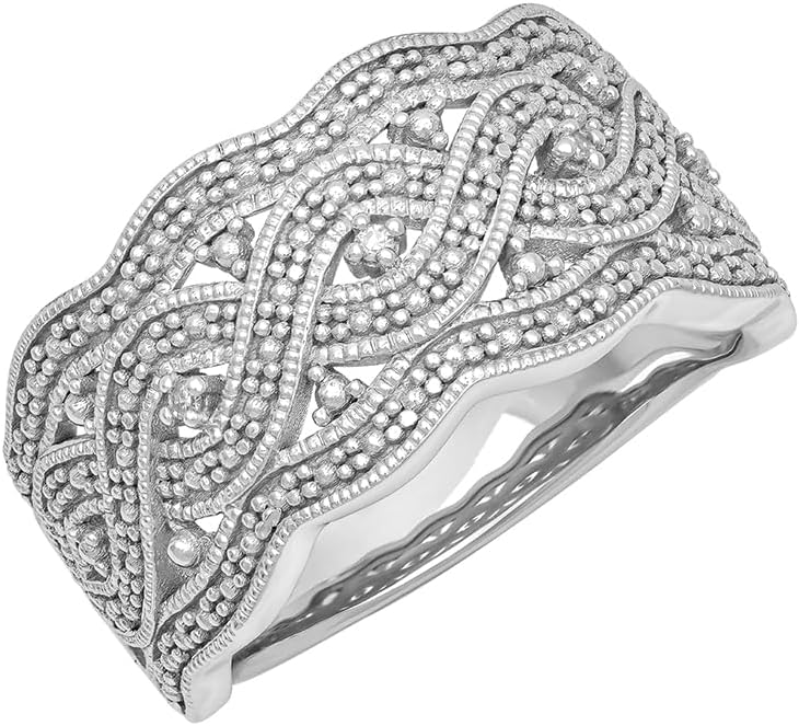 عتيقة جميلة - اجعل قرارك سهلاً مع مجموعتنا الحصرية من خواتم الزفاف النسائية المصنوعة من الفضة الإسترلينية. يعد هذا الشريط المضفر الأنيق خيارًا رائعًا ليومك الكبير. يمكن أن يكون أيضًا خاتم وعد مذهل لها. يتميز هذا الخاتم بلمسات ألماسية جميلة، وهو تعبير فاخر عن الحب وبسعر في متناول الجميع.