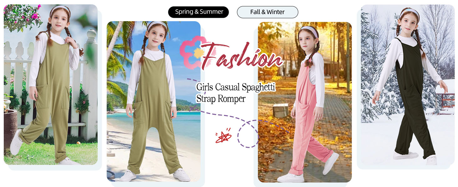 【Match】-Wide leg jumpsuits perfect match with t-shirts, tank top, crop top, sneakers, pants etc. Playing at the beach, party or simply everyday wear, your child will be comfortable as well as trendy. And suit for any season.