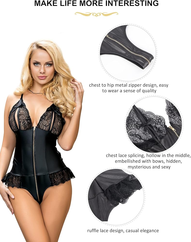 【تصميم فريد】-- ملابس داخلية بخياطة من الدانتيل مع رسن رقبة، وأكواب لاسلكية، بدون ظهر، وسحاب أمامي للإغلاق وأشرطة قابلة للتعديل للدعم والشكل.