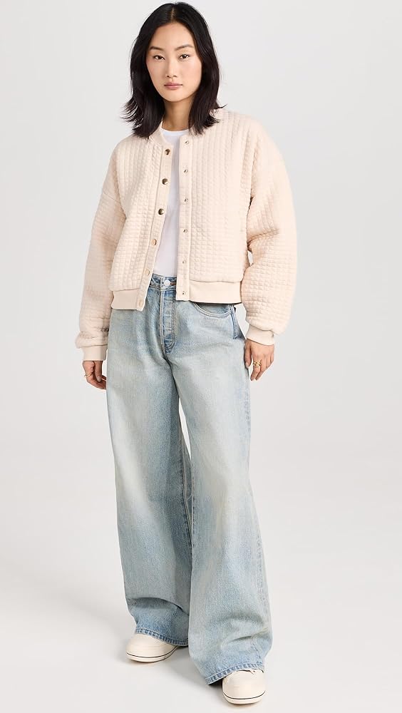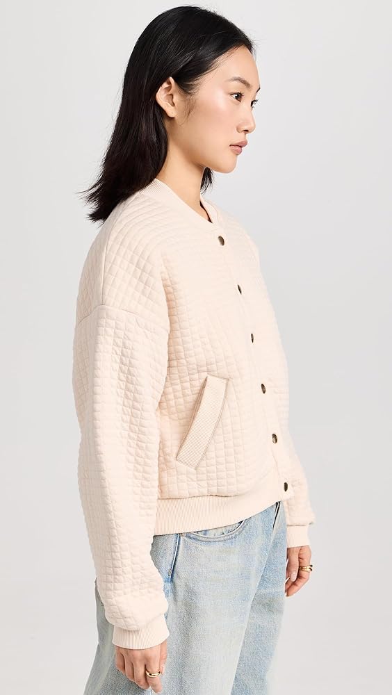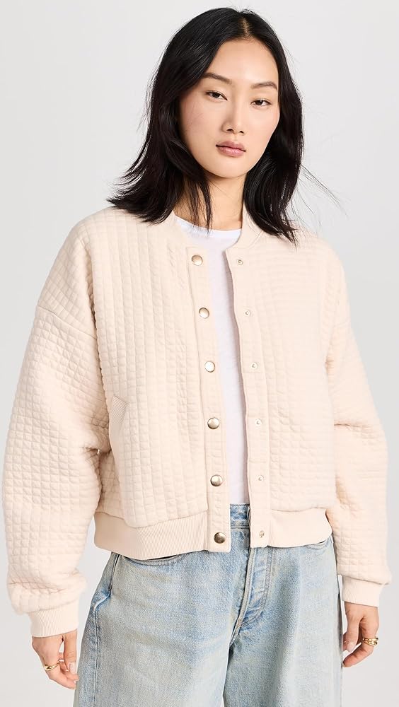 It's the quilted bomber jacket you were obsessed with, but with a softer, feminine edge (thank the micro quilted pattern) and the oversized, cozy fit you love. Throw it on for post-work dinners, and leave it on when you're relaxing on the couch afterwards. (This one comes in White Chocolate.). XS Logan Jacket, in White Chocolate | NATION LTD.
