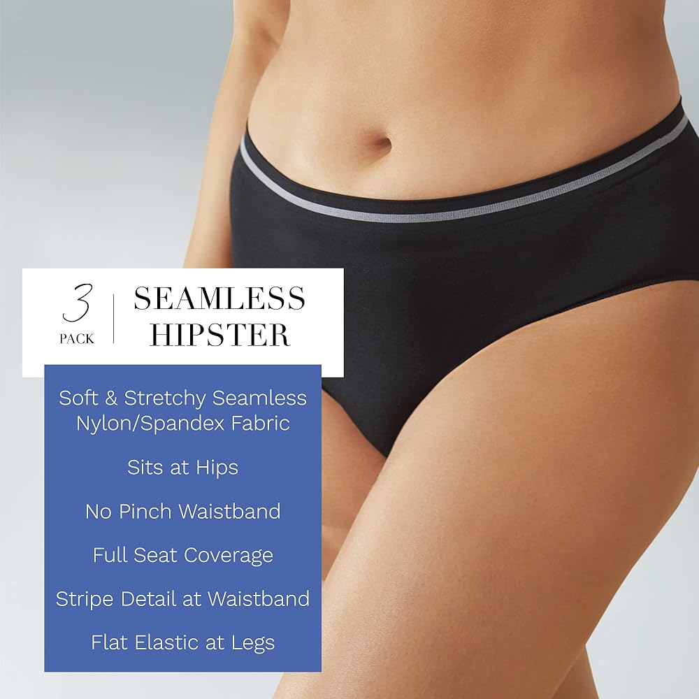 سراويل داخلية نسائية من ELLEN TRACY بدون خياطة تناسب هيبستر - عبوات متعددة من 3 قطع