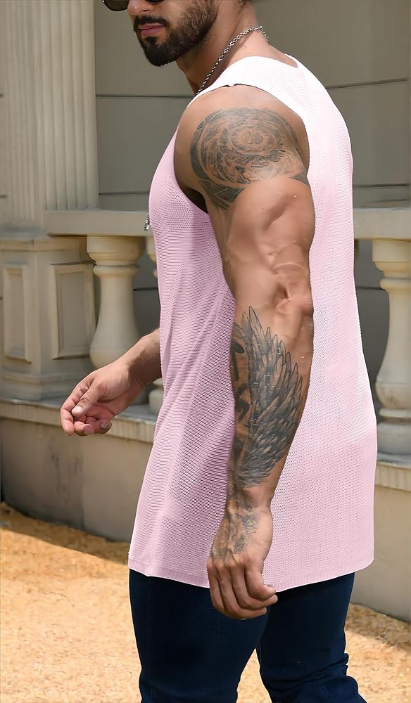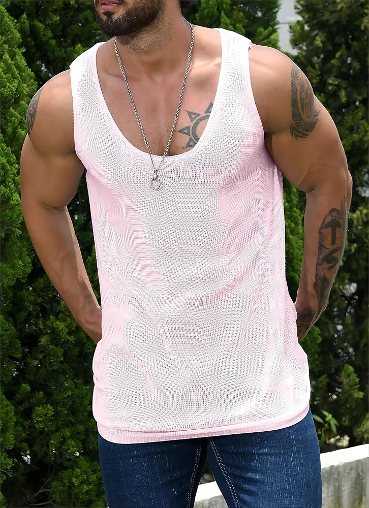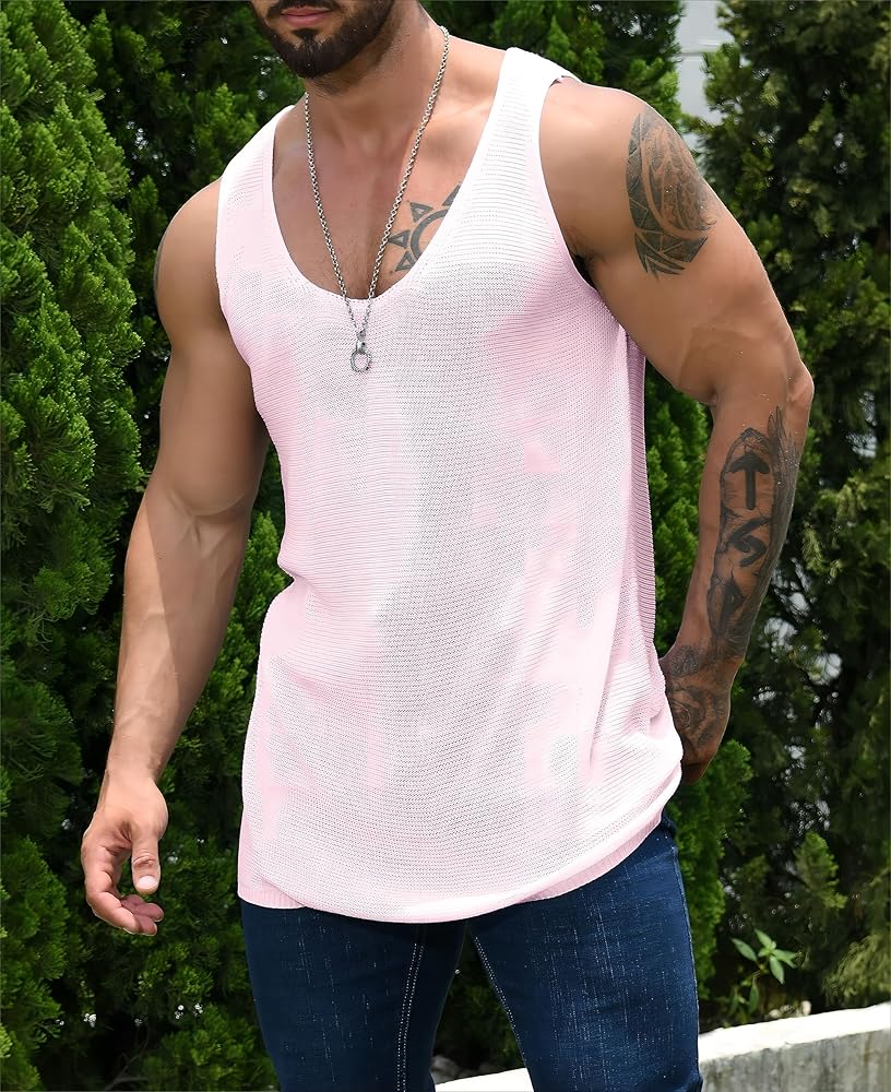 قميص رجالي شفاف بدون أكمام كاجوال بدون أكمام، بلوزات سترة شبكية للعضلات