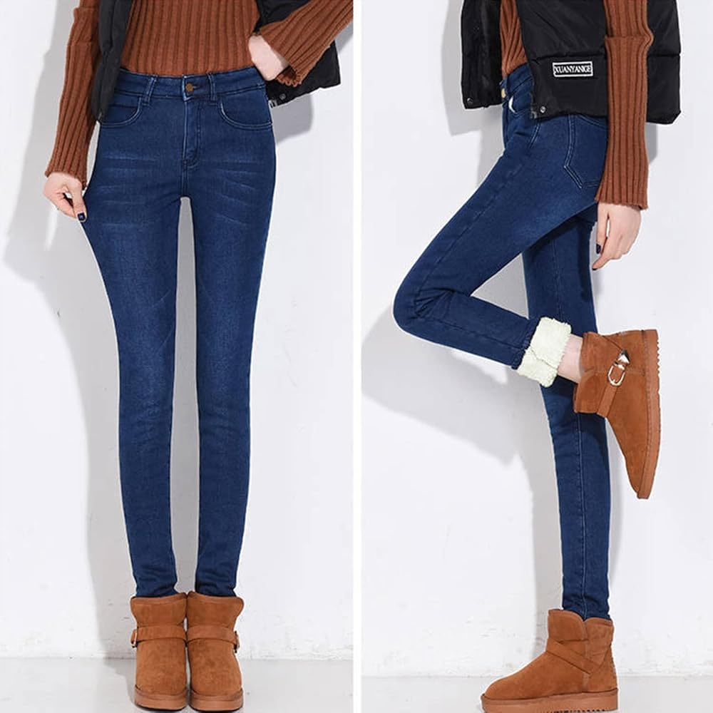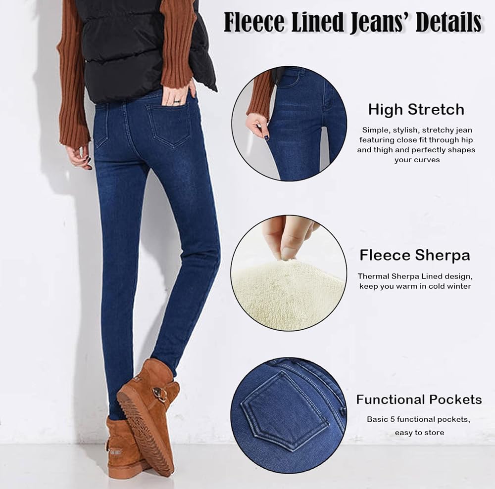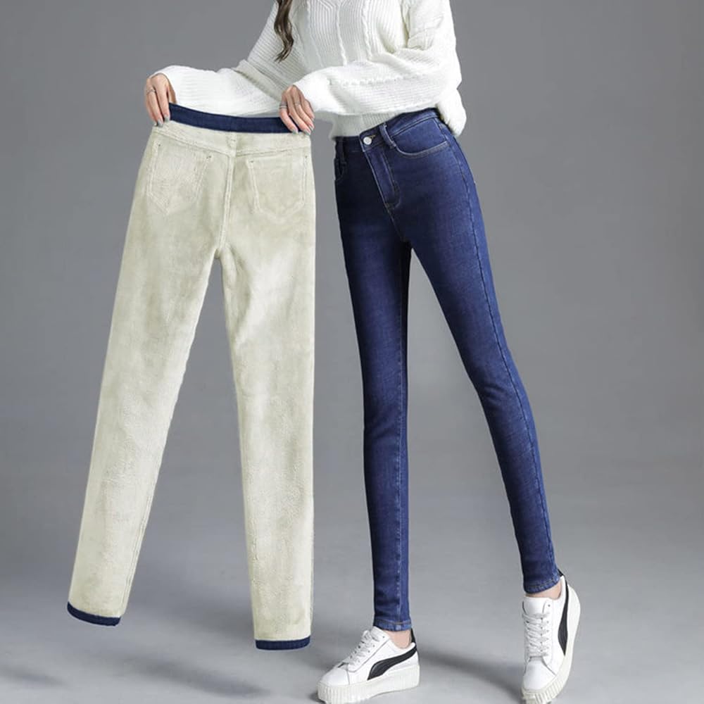 ★Winter Sherpa Fleece Lined jeggings for Women, High Waist Stretchy Thick Cashmere jeans Plush Warm Thermal Denim Pants ★