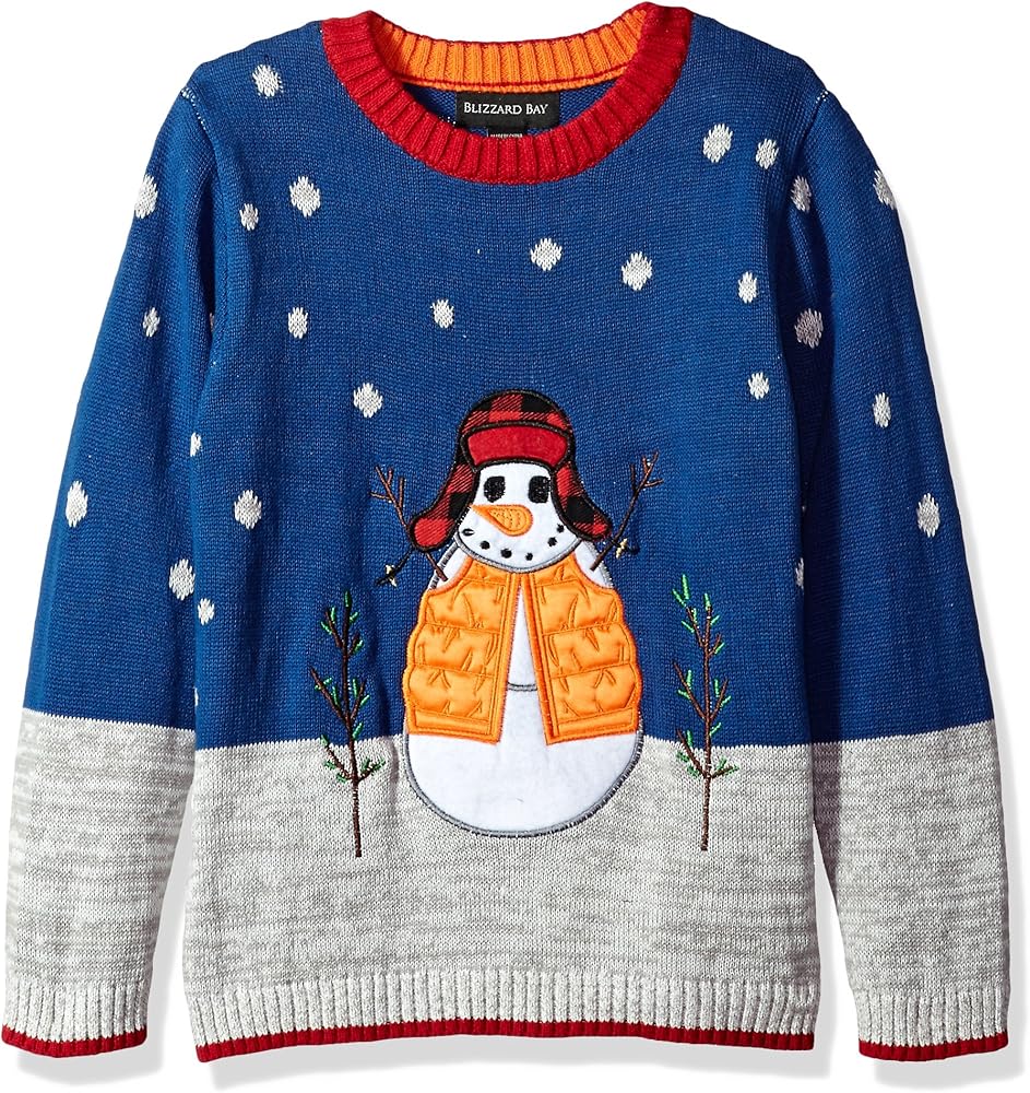 Blizzard Bay big boys 'long sleeve crew neck snowman with hat Christmas pullover sweater