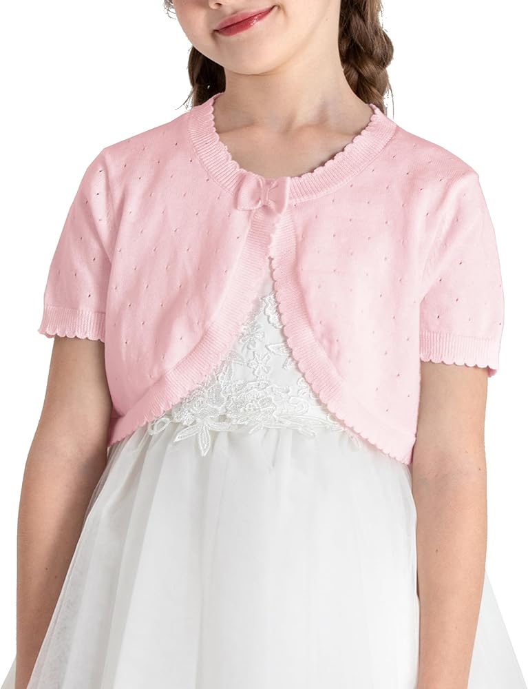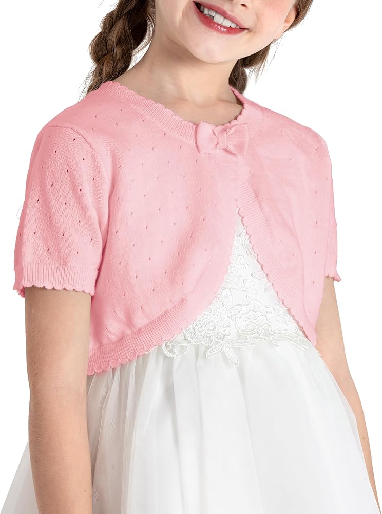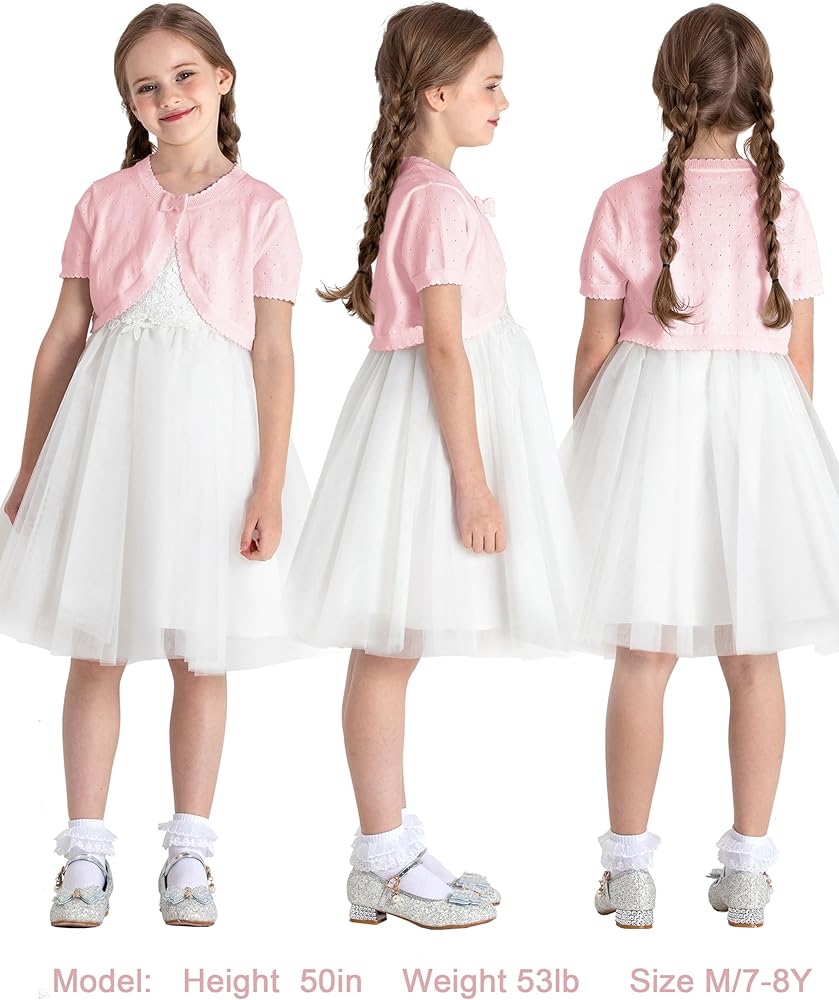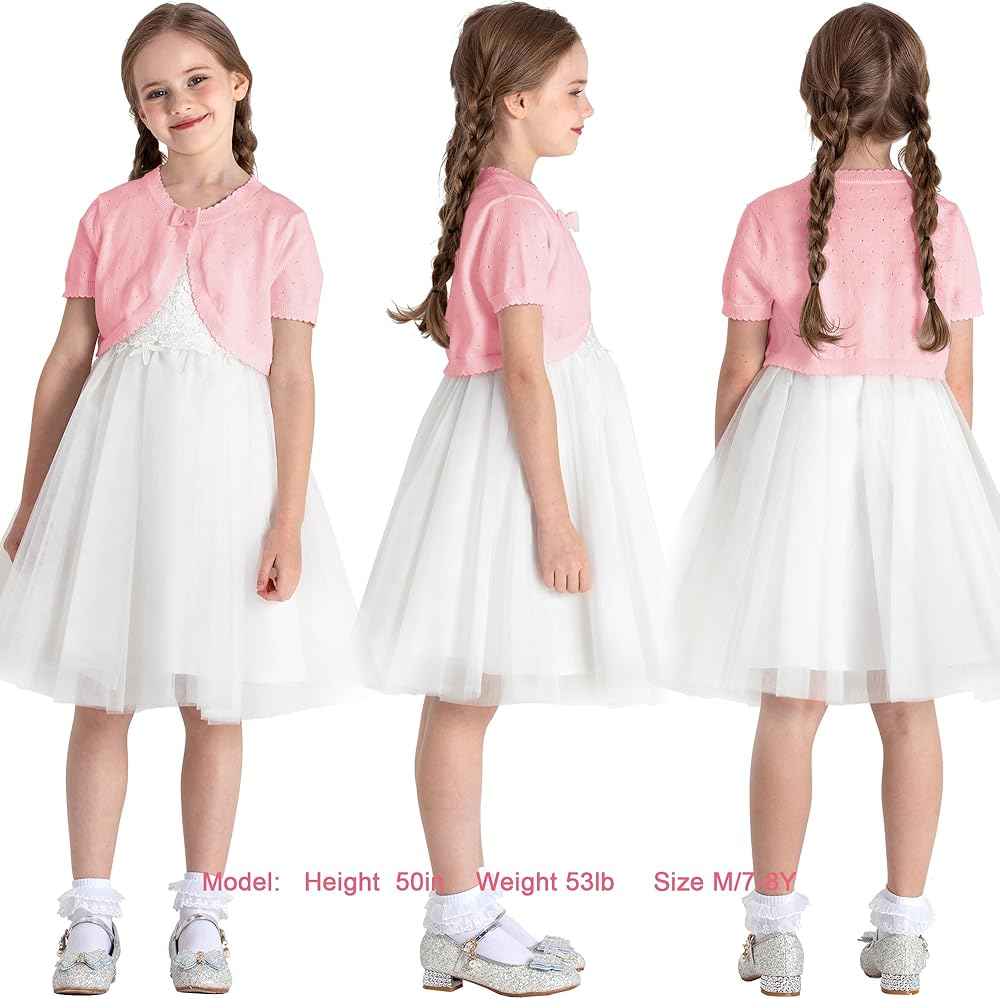 SUMMER DRESS MATCH: featuring short sleeve bolero design, the girls shawl is perfect for accompanying sleeveless dress in summer, fashionable and cool; The simple color makes it match all kinds of dresses, like sparkling dress, flower printed dress, princess dress and more, well matched to add aesthetic beauty