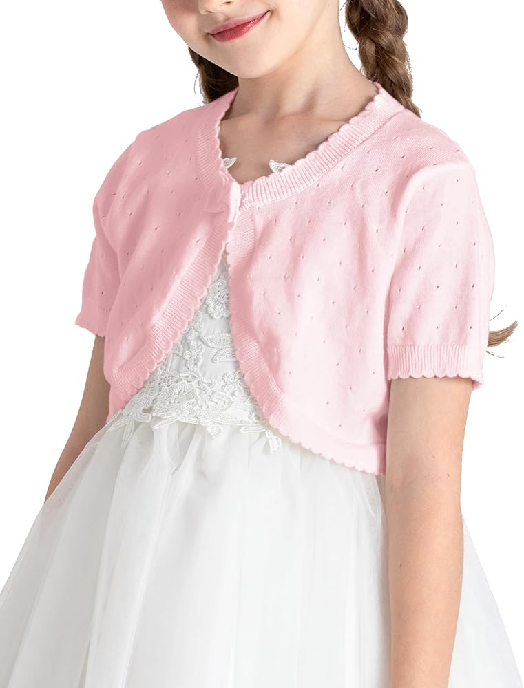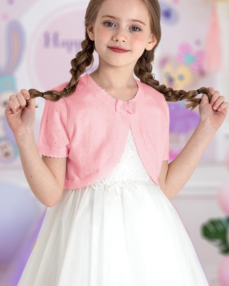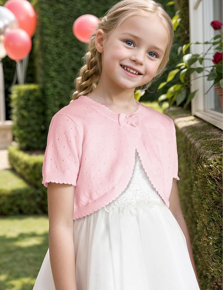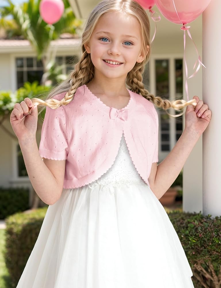 SUMMER DRESS MATCH: featuring short sleeve bolero design, the girls shawl is perfect for accompanying sleeveless dress in summer, fashionable and cool; The simple color makes it match all kinds of dresses, like sparkling dress, flower printed dress, princess dress and more, well matched to add aesthetic beauty