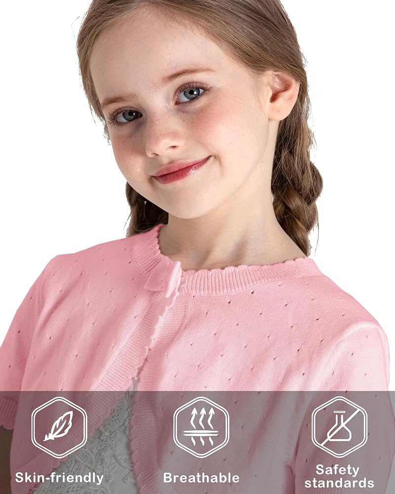 SOFT AND SKIN-FRIENDLY: our girls bolero is made of 100% cotton, comfy and skin-friendly, will not cause discomfort in wear, not easy to pill or shrink; The hollow design ensures the breathability and knit design keeps warm in cooler weather, suitable for summer and warmer spring or autumn