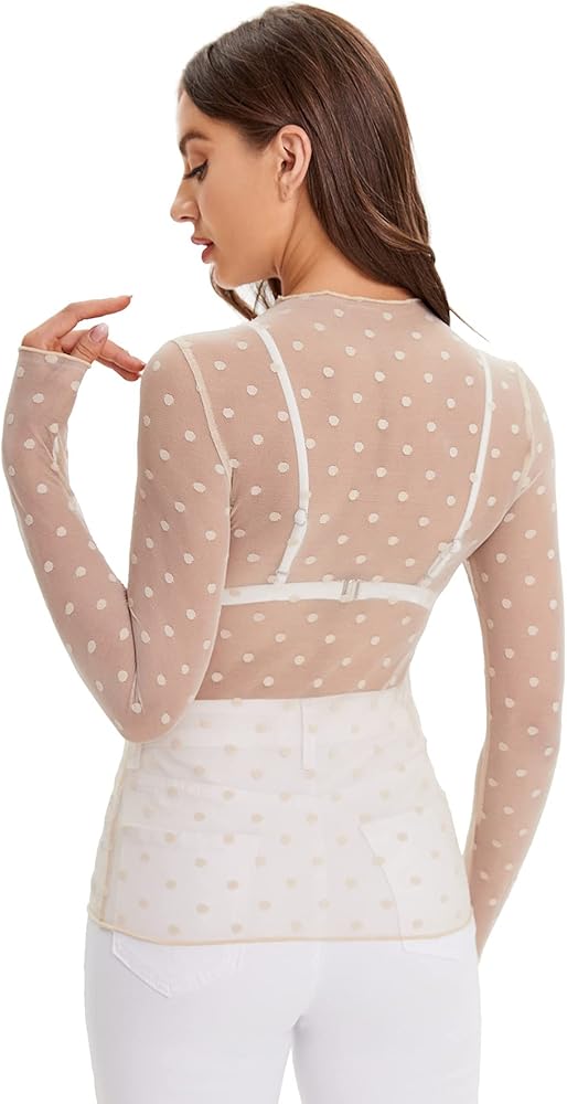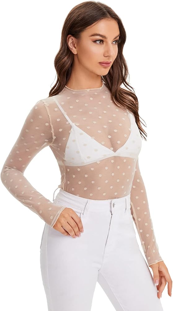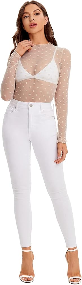 - طباعة منقطة، رقبة دائرية، أكمام طويلة، مقاس نحيف