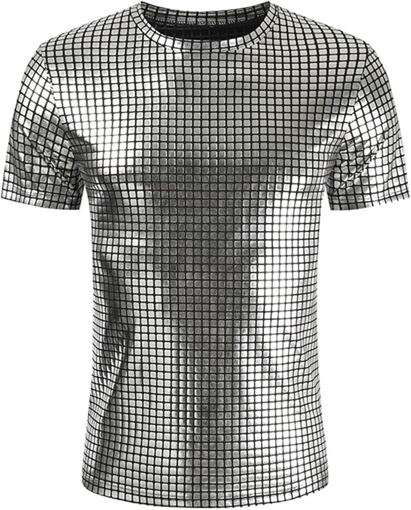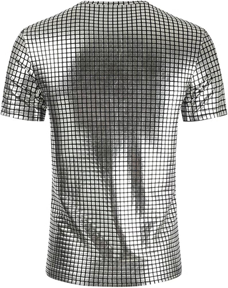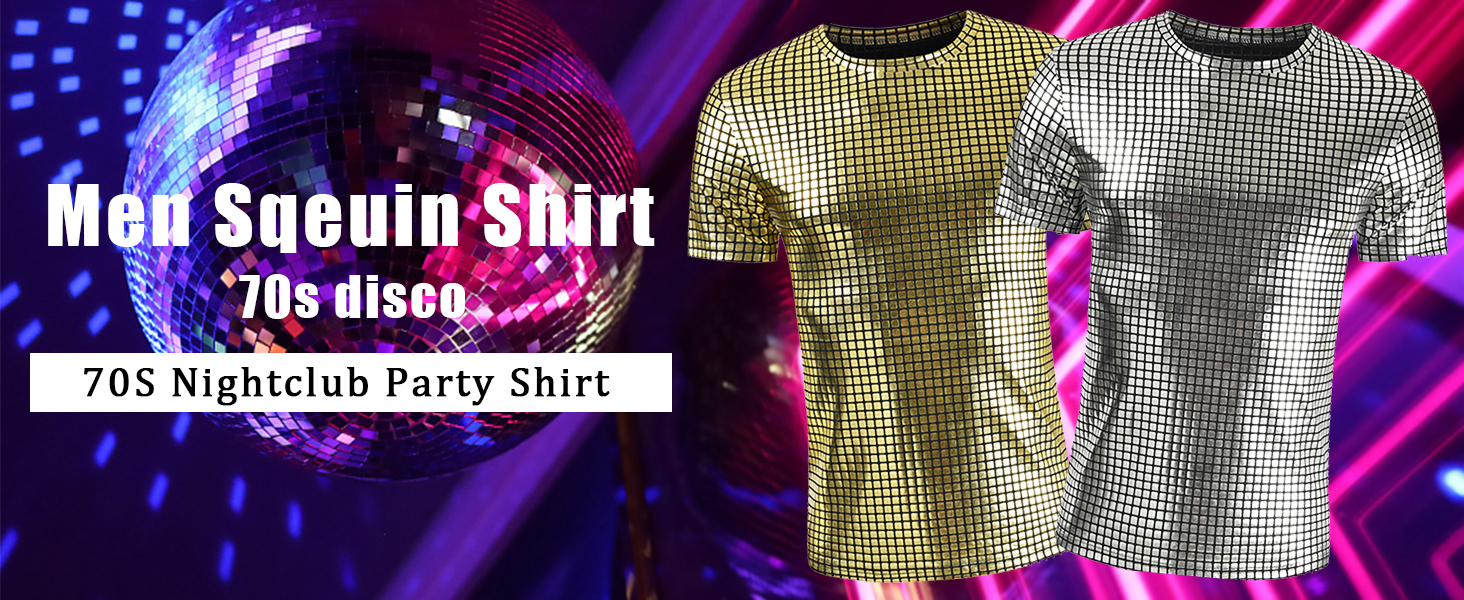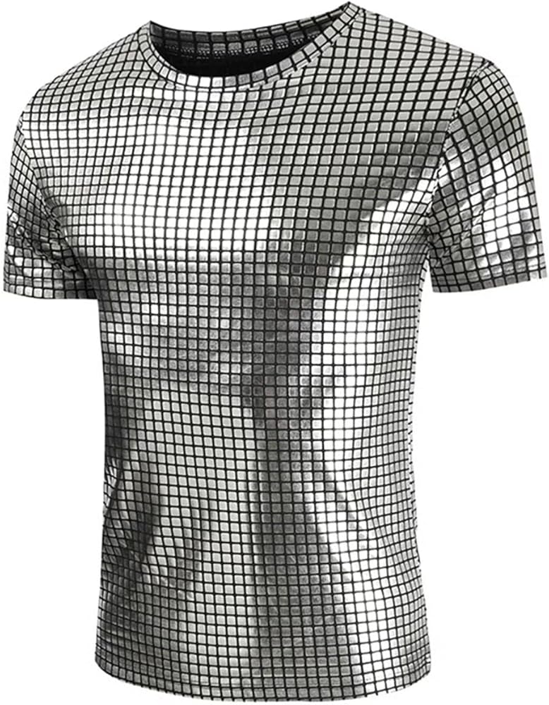قميص ديسكو للرجال في السبعينيات بأكمام قصيرة مزين بالترتر، ملابس محببة للنوادي الليلية وحفلات الكريسماس