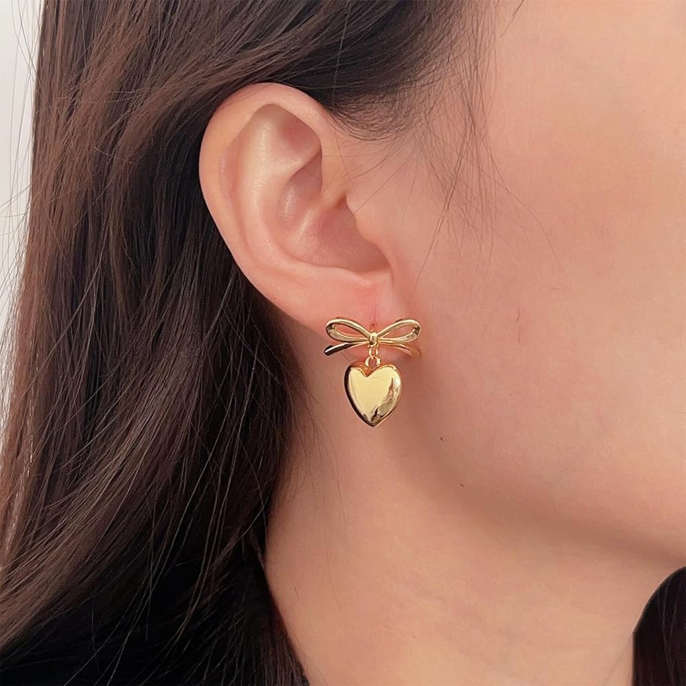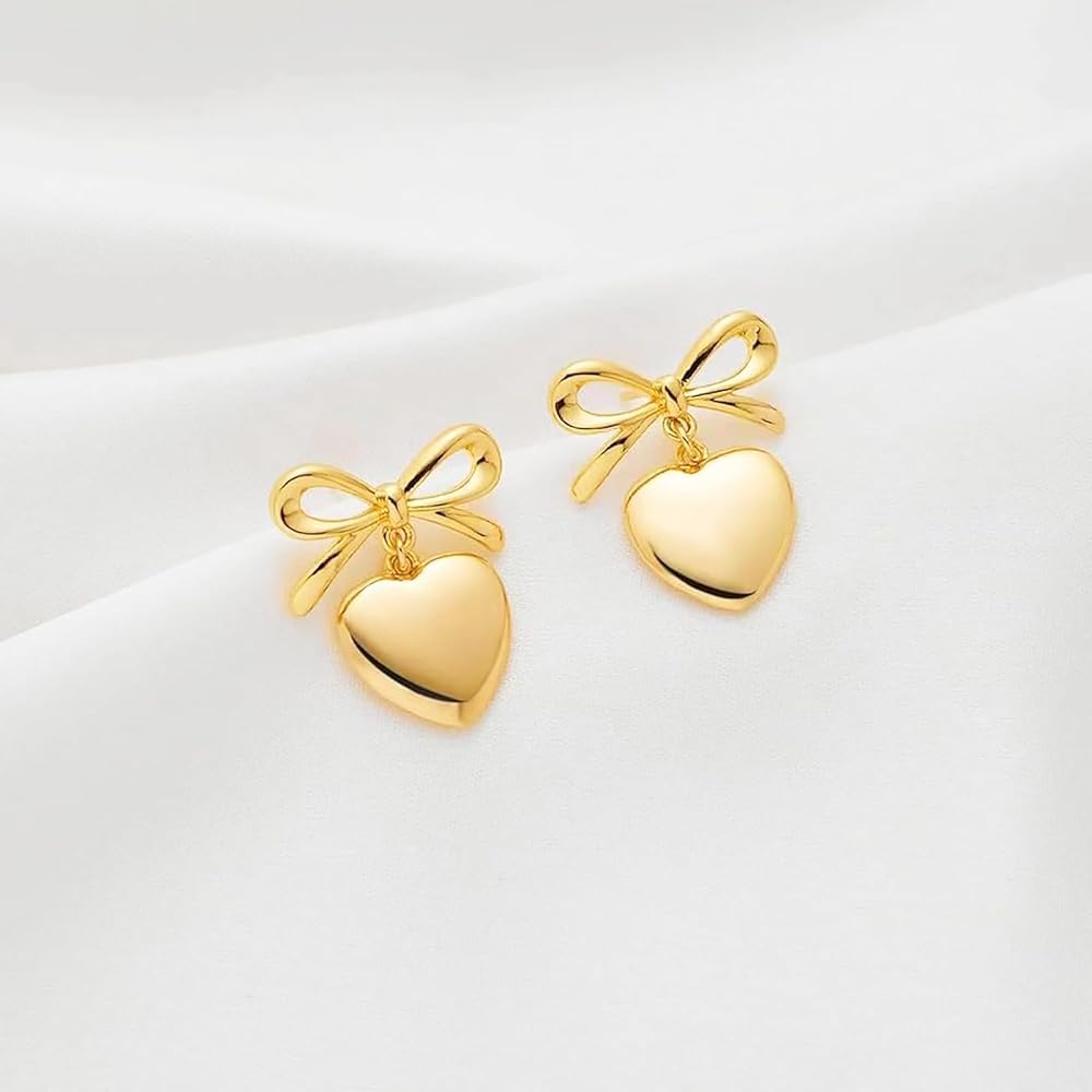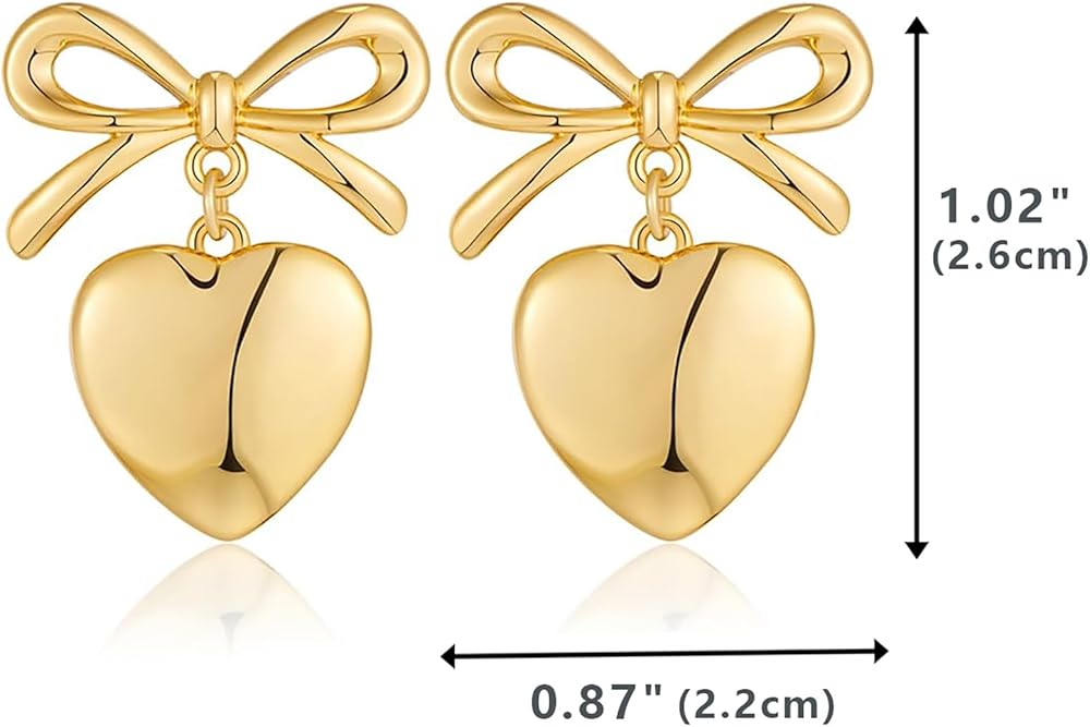 ❤Fashion Design: Unleash your inner fashionista with the stylish heart-shaped bow pendant. The intricate design reflects the latest trends, making these earrings a must-have accessory to enhance your overall look.