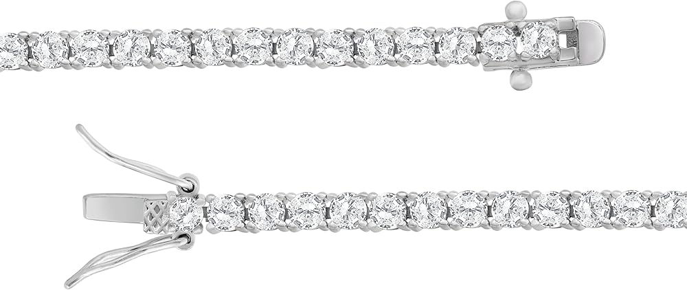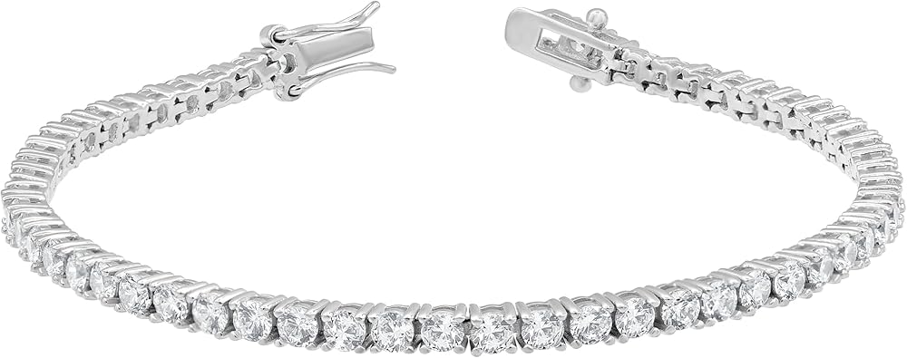 سوار التنس من الفضة الإسترلينية: مصنوع من الفضة الإسترلينية عيار 925، زركونيا مكعبة مستديرة - كل منها تم إعدادها بشكل فني لتعزيز الحجم والتألق - يبرز هذا النمط الخالد. احصل على هذه المنتجات للحفلات والتسوق والعطلات وفي أي مكان حرفيًا! لن تضطر إلى القلق بشأن ما ترتديه بعد الآن.