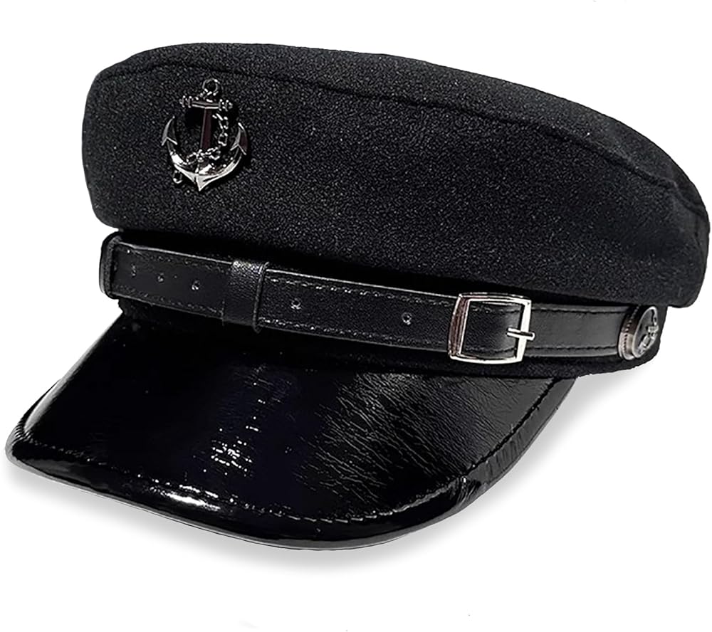 قبعات كابتن صوفية عتيقة مع مرساة وشريط من جلد البولي يوريثين، قبعات أنيقة للحفلات البحرية لصياد الصيادين البحريين