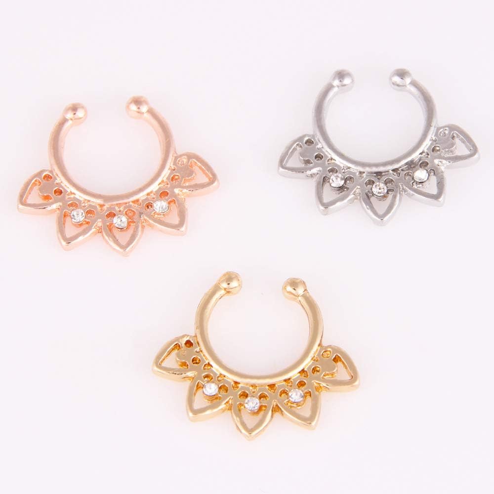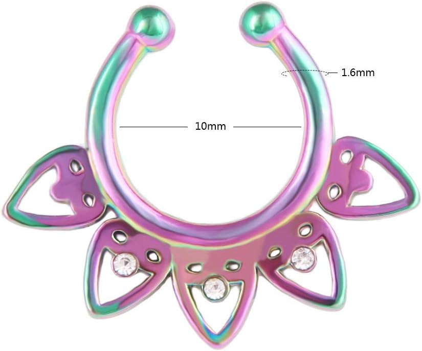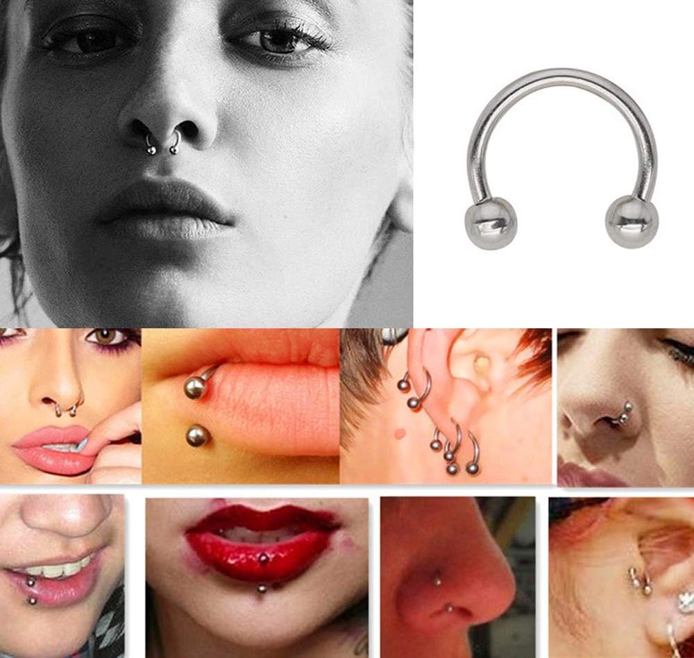 16 قطعة من حلقات الأنف المزيفة المصنوعة من الستانلس ستيل الصناعي للشفاه والأذن والأنف والحاجز الأنفي بمشبك غير مثقوب