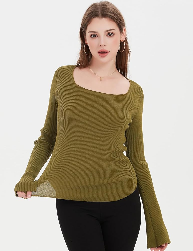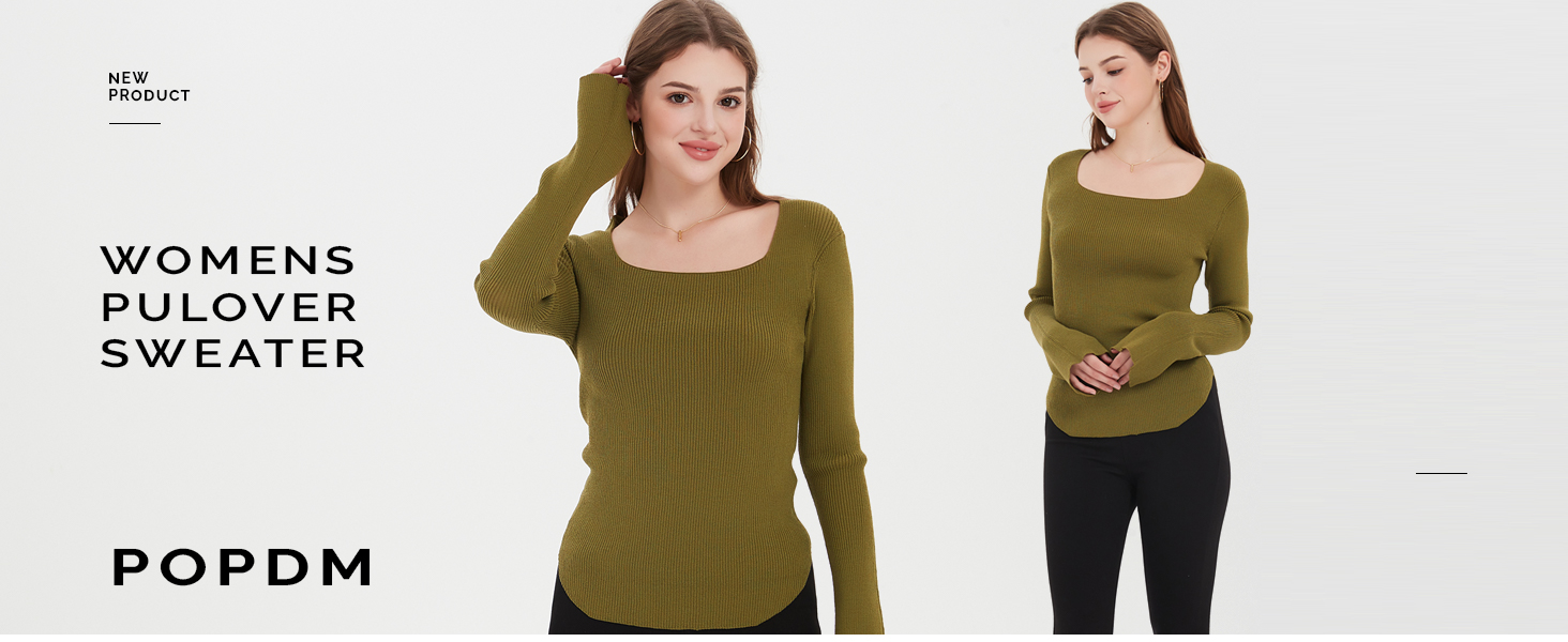 سترة نسائية من POPDM بأكمام طويلة ورقبة مربعة خفيفة الوزن للخريف والربيع