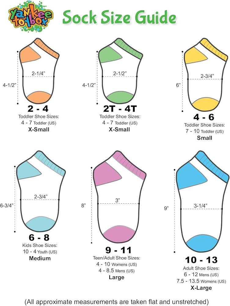SIZING - These cute socks come in toddler girl's sock size Small. Sock size Small (4-6) fits shoe size 7 M US Toddler - 10 M US Toddler.