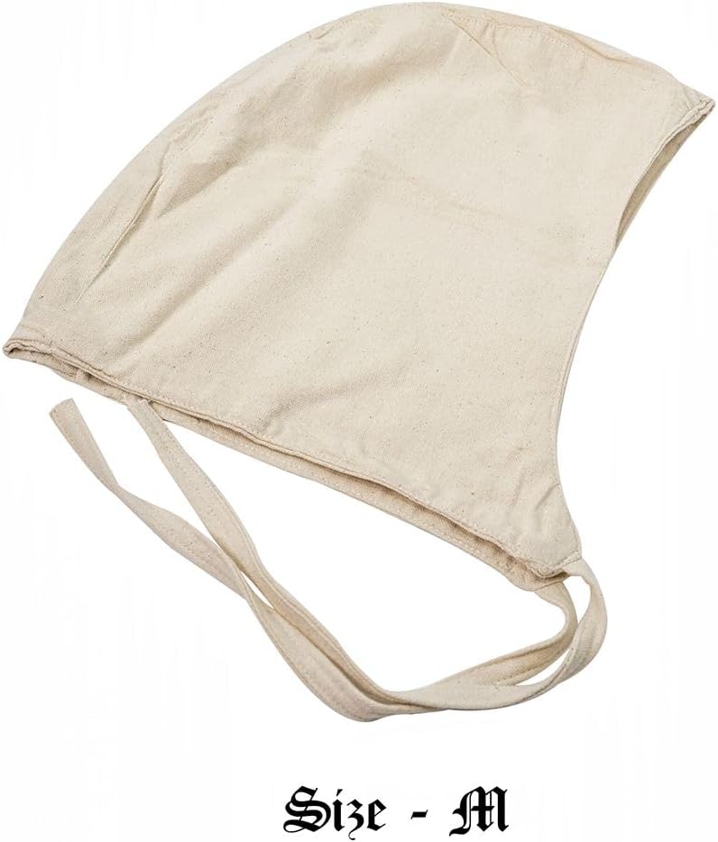 Mythrojan Chainmail Coif مع قبعة من قماش القطن | غطاء محرك السيارة البريدي من العصور الوسطى درع الفايكنج LARP مقاس 16 باللون الفضي والقرون الوسطى مقاس متوسط قبعة قماشية خفيفة ناعمة وقوية 100% من القطن زي القرون الوسطى