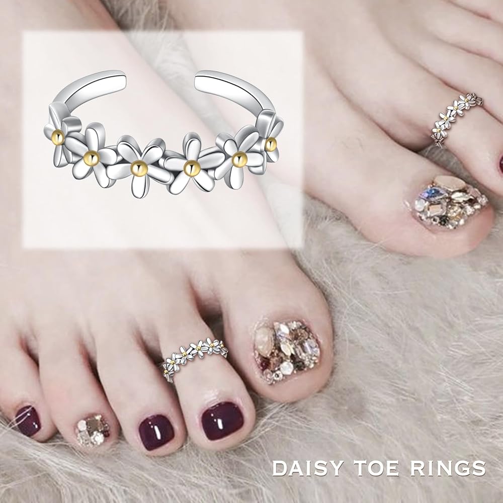 هايد خواتم اصبع القدم من الفضة الاسترليني عيار 925 للنساء مطلية بالله عيار 18 قيراط، خواتم خنصر قابلة للتعديل للصيف والشاطئ