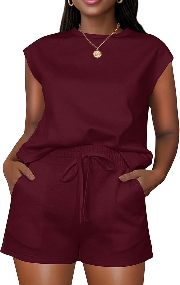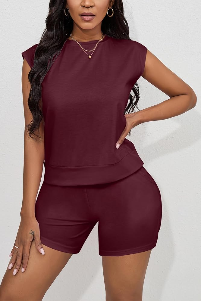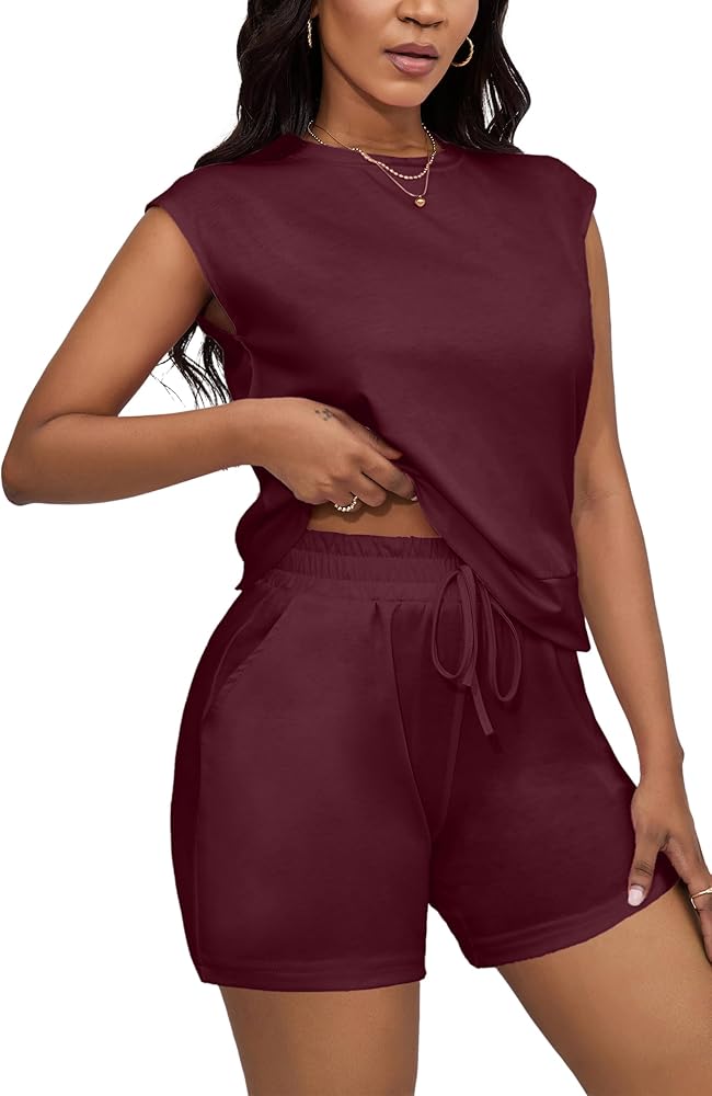 تصميم كاجوال ومريح - تتميز هذه الملابس المكونة من قطعتين ببدلات رياضية كبيرة الحجم بدون أكمام وسراويل قصيرة للتمرين. يمكنك ارتداؤه بشكل منفصل. طقم ملابس قصيرة كاجوال أنيقة للنساء/الفتيات المراهقات