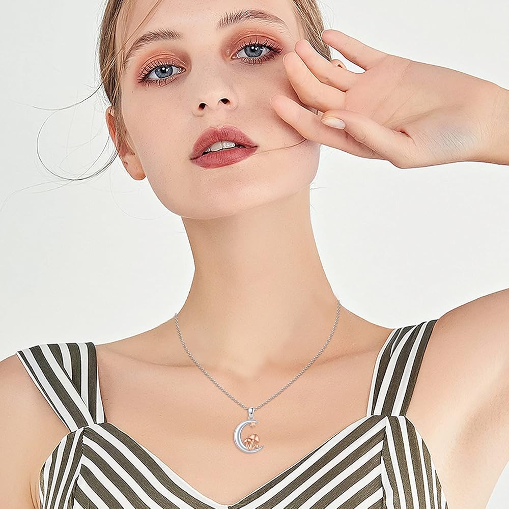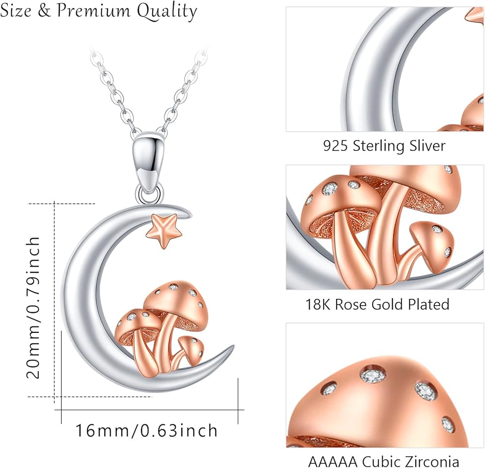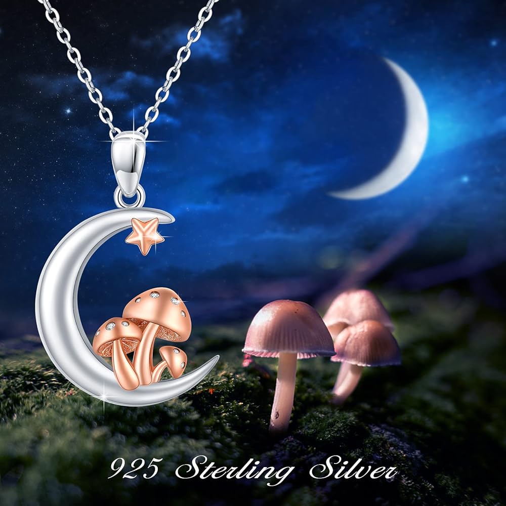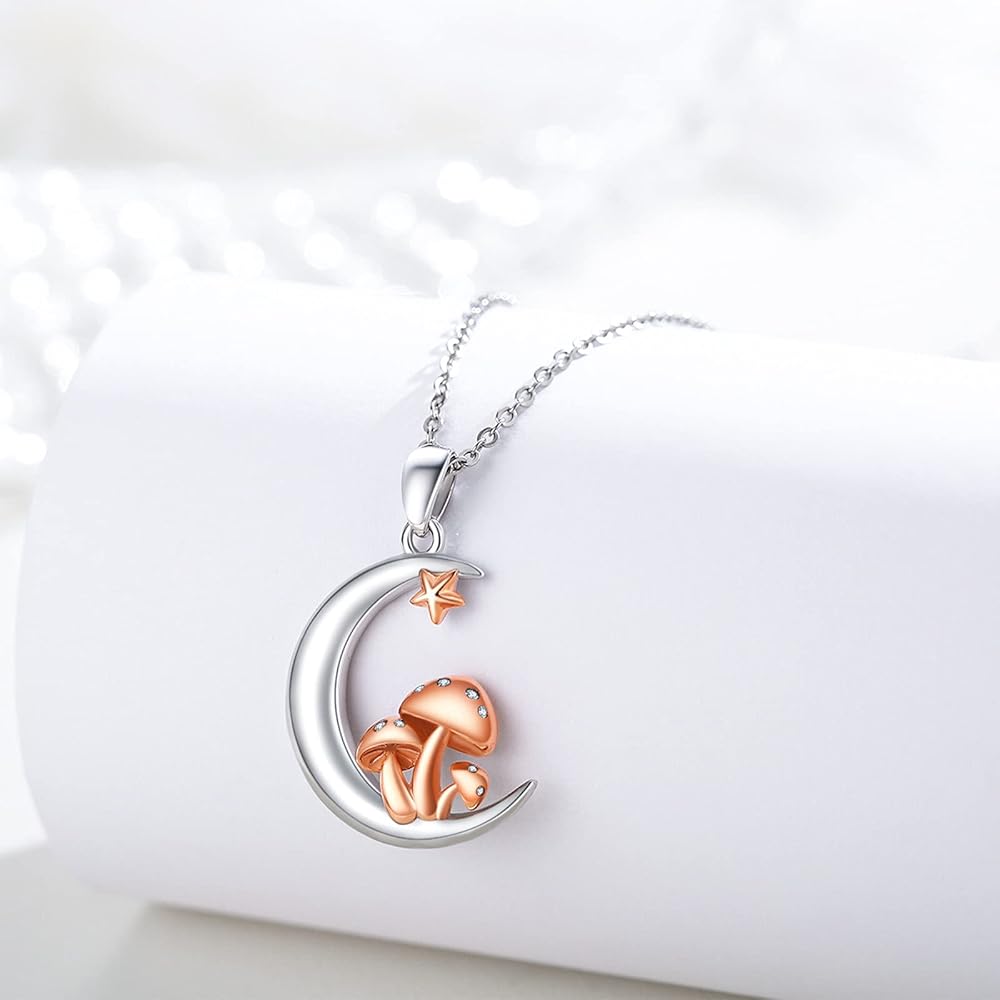 Mushroom Moon Star Pendant Necklace for Women Girls: