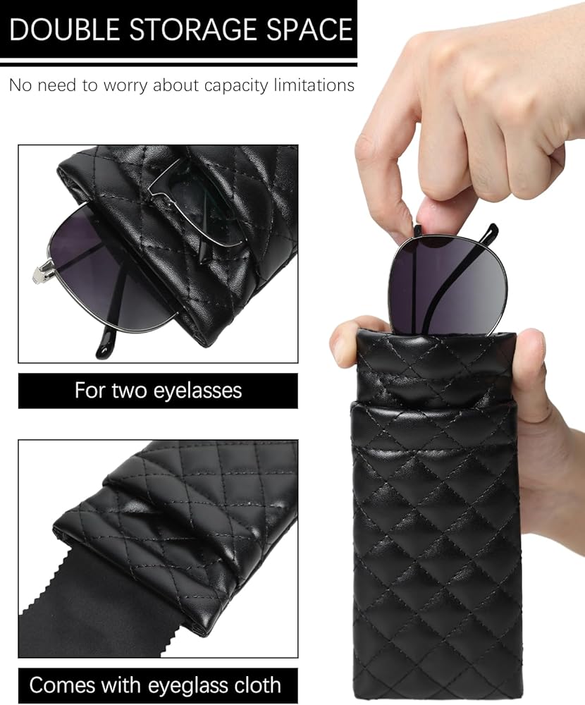 • مناسبة للعديد من المناسبات: لقد قمنا بإعداد حافظات النظارات النسائية ذات اللون الأسود والأبيض والوردي بعناية لتختار من بينها. يمكن لكل من الرجال والنساء استخدام حافظة النظارات الجلدية الخاصة بنا. تُعد حافظة النظارات الشمسية الناعمة هدايا مثالية للسفر والعمل اليومي والشاطئ والمهرجانات. اختر إبراز سحرك الشخصي الفريد.