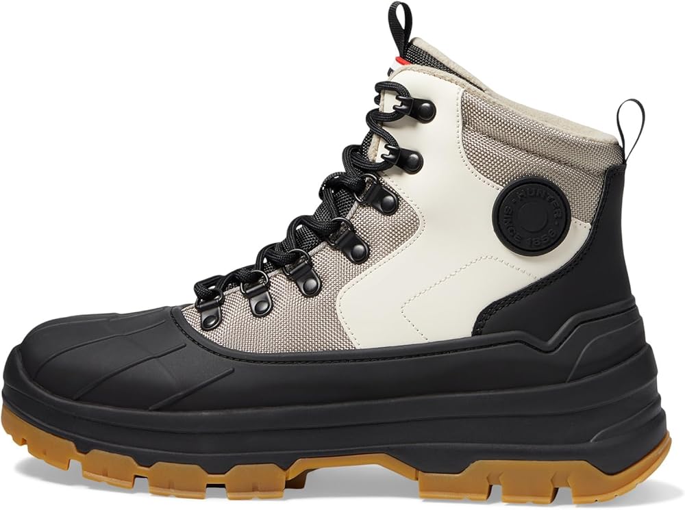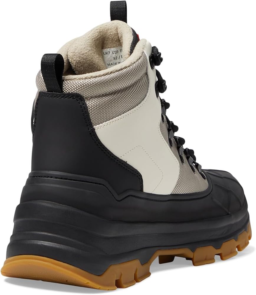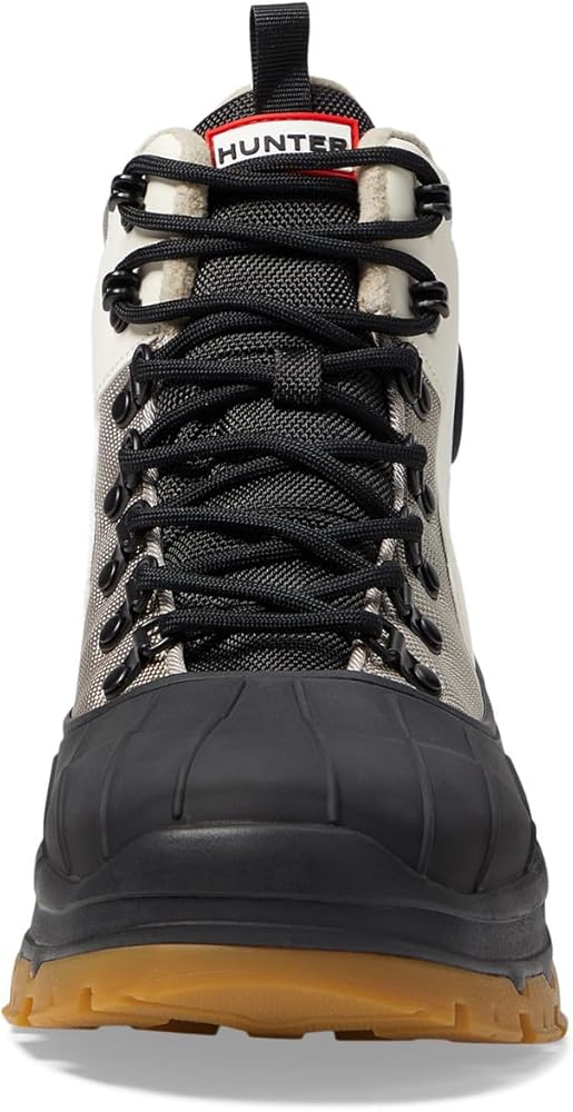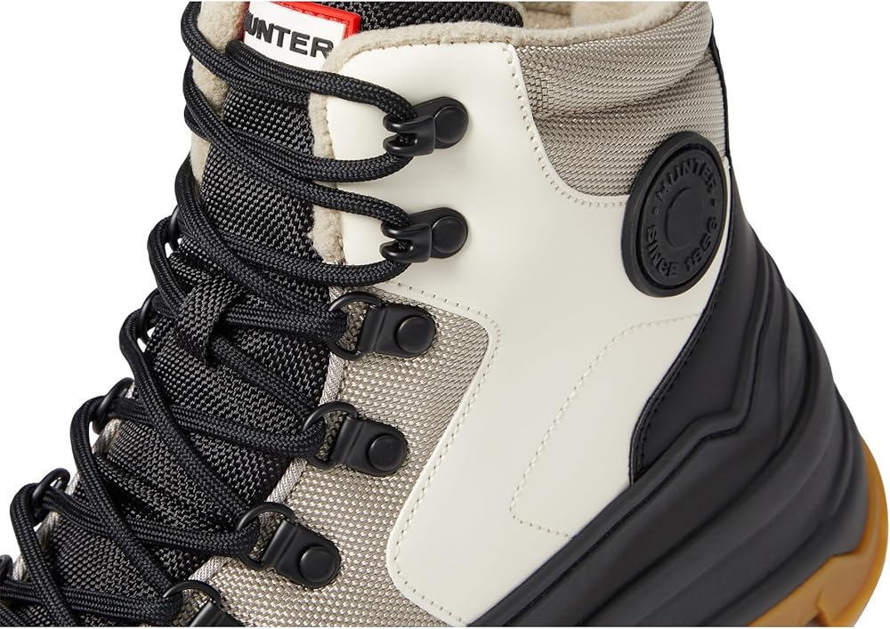 Walk the talk of the town in a new style by wearing Hunter Explorer Duck Boot. It is crafted from recycled polyester upper, lining, and insole. The round-toe boot features a lace-up closure, and pull-tabs for easy on and off. A wedge platform enhances the traction. Recycled polyester midsole. FSC rubber outsole.