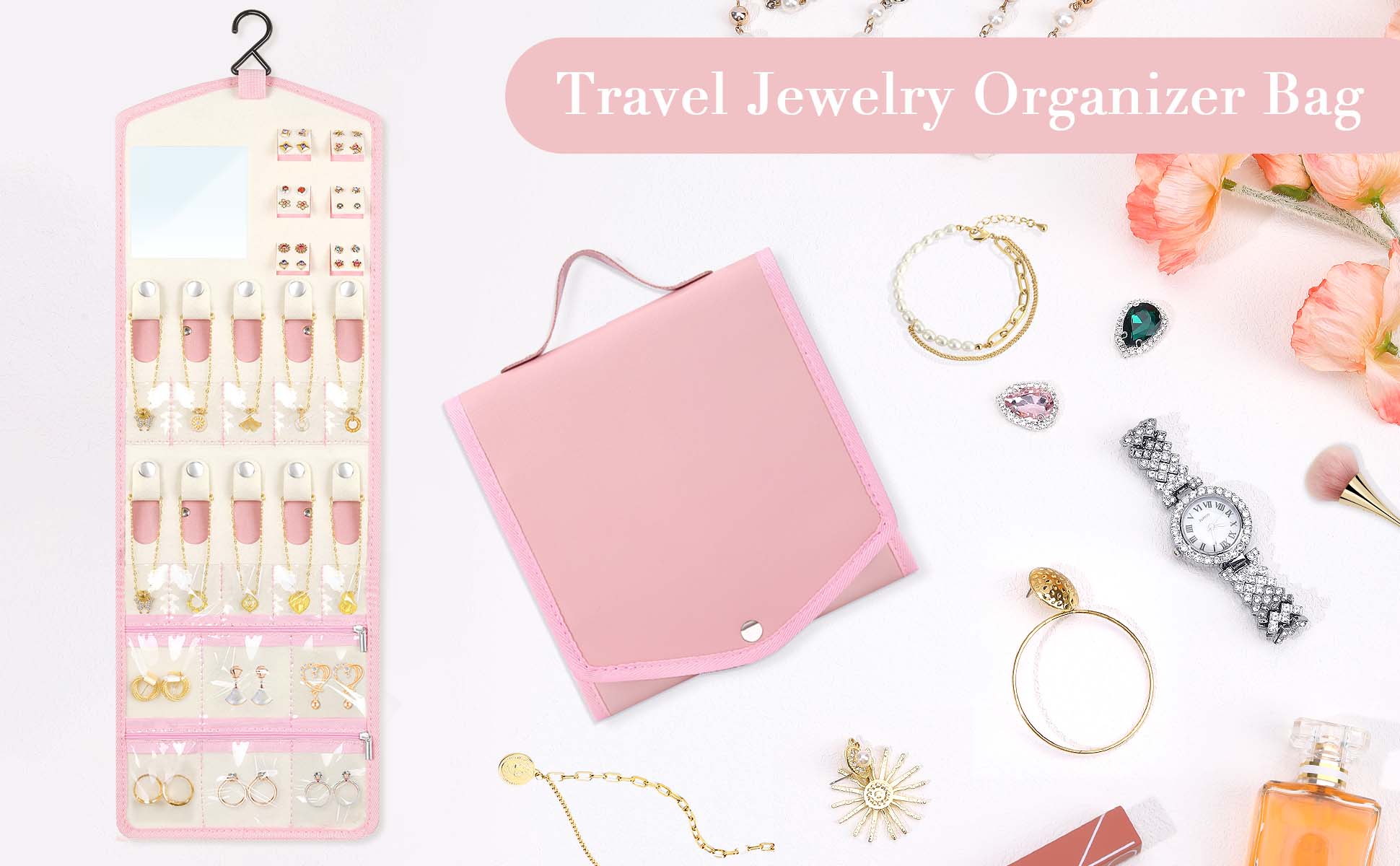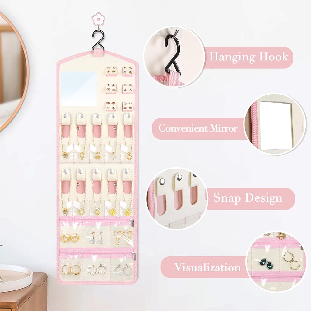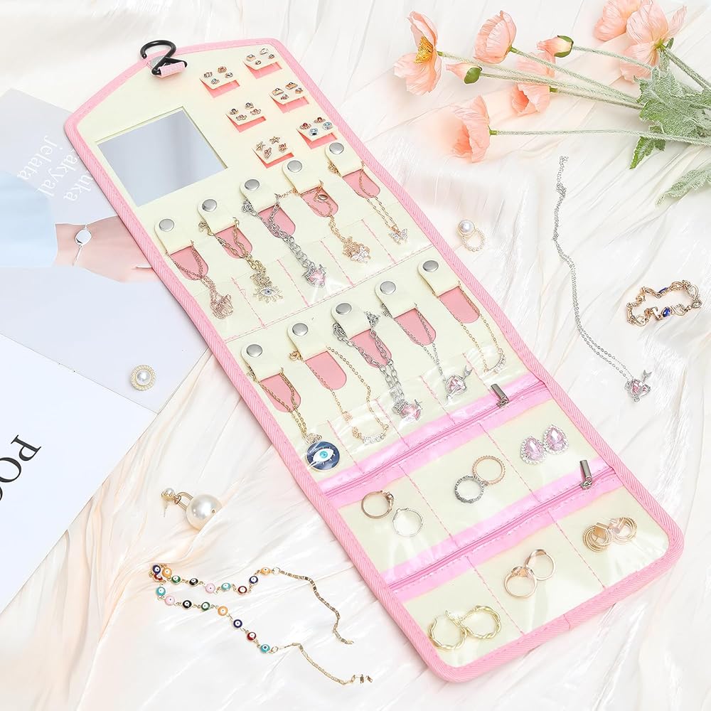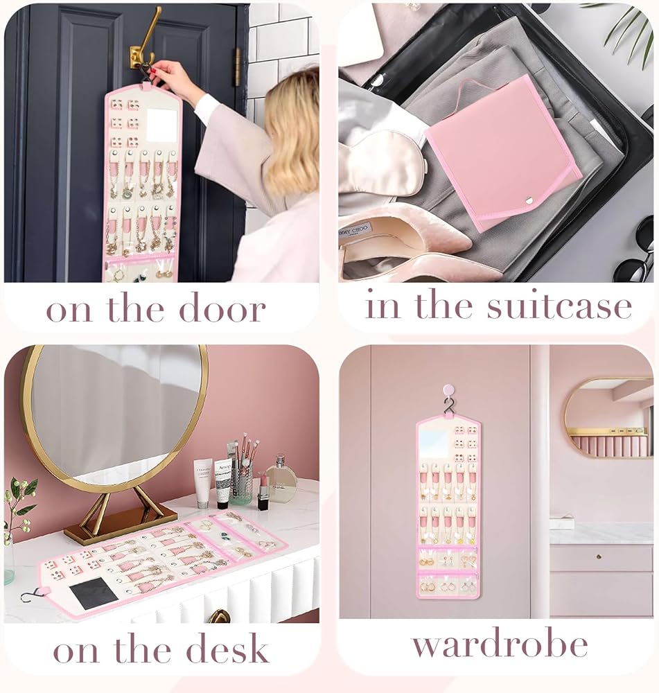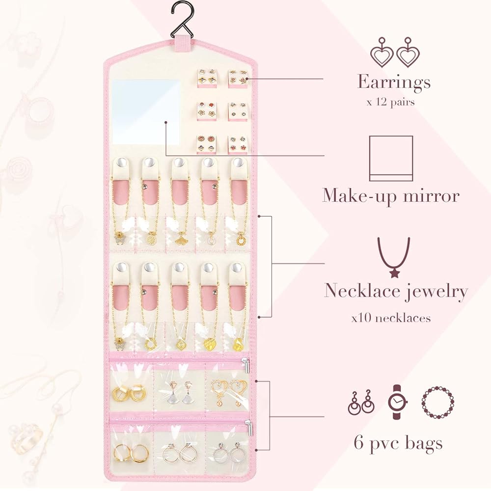 【هدية ذات مغزى】: كل امرأة وفتاة من حولك تستحق حامل مجوهرات السفر الجميل والعملي. يُعد منظم حامل المجوهرات هذا خيارًا مثاليًا كهدية لها في عيد الأم وأعياد الميلاد وعيد الحب والكريسماس. بكرة المجوهرات ضرورية أيضًا للفنادق والعطلات والحفلات وما إلى ذلك.