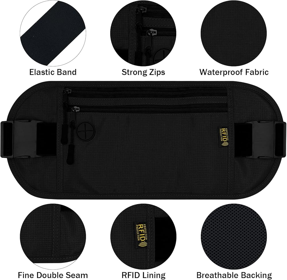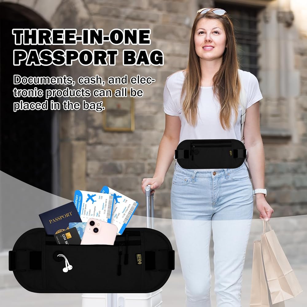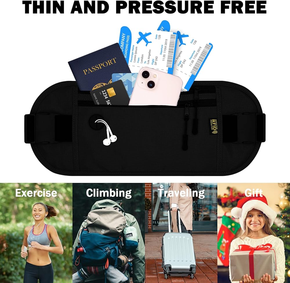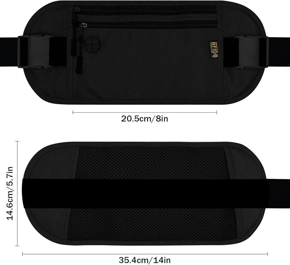 【Hidden Under the Clothes & Concealed】 - The ultra-thin design, 0.2 inches thicker, ensures that it will not be seen by others when worn under clothing, and is a secure solution to securely store your ID, credit cards, passports, cash, mobile phones, keys and other valuables, preventing thieves. Not only for travel, but also for sports and other occasions can be used as a running belt or Fanny pack.