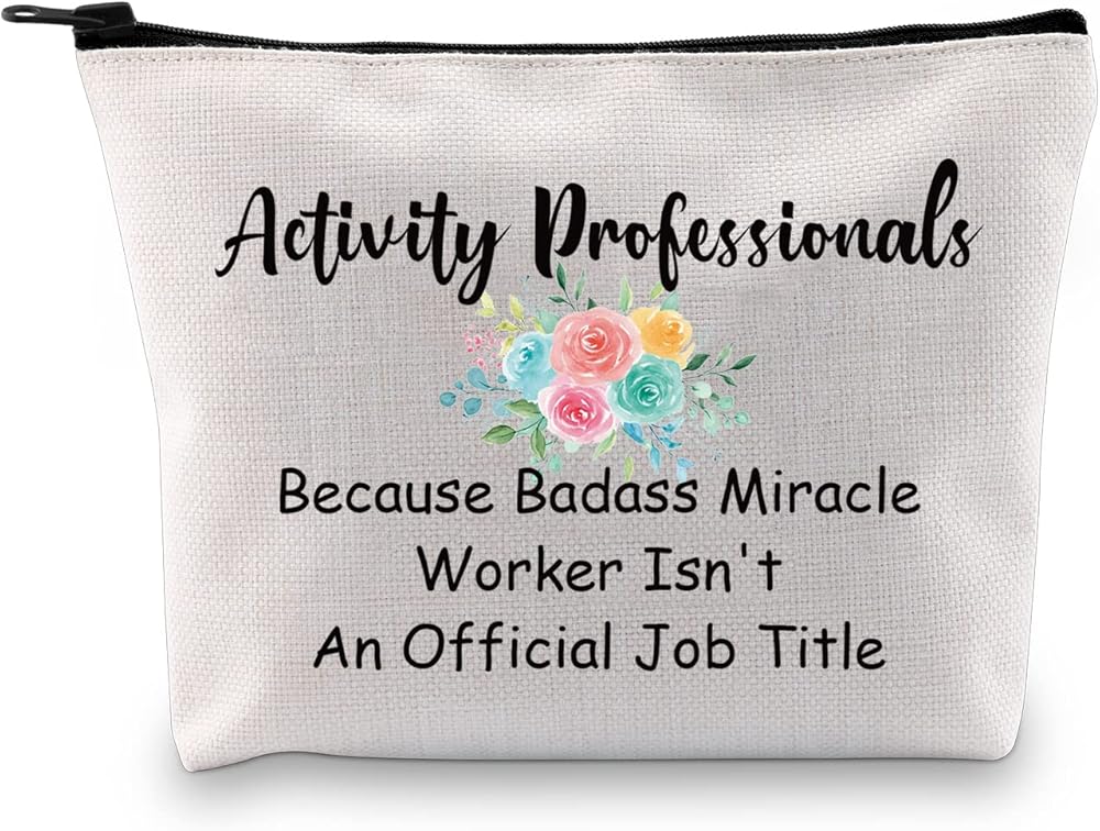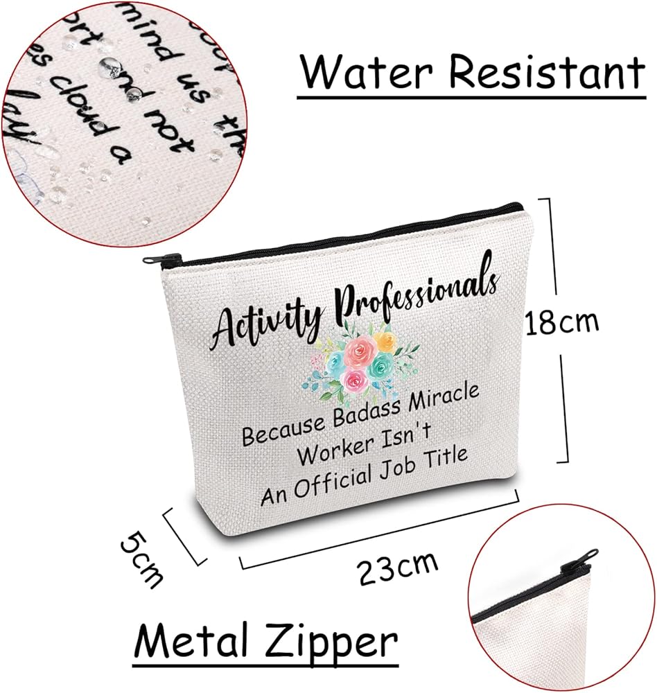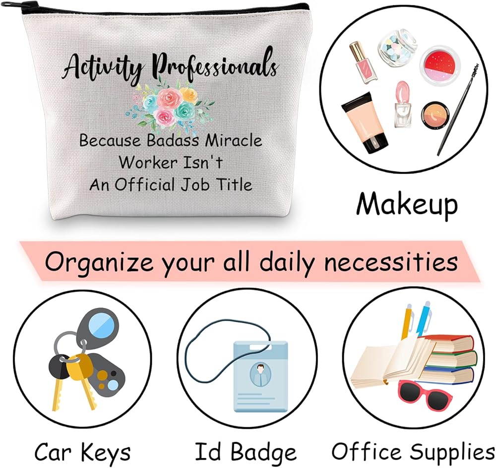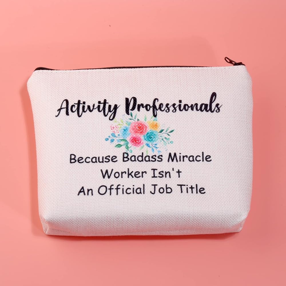 JXGZSO Activity Professionals Week Gift Because Badass Miracle Worker Isn't An Official Job Title Makeup bag Activity Director Bag.