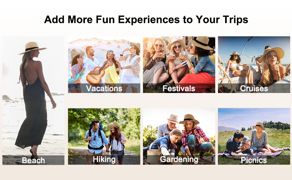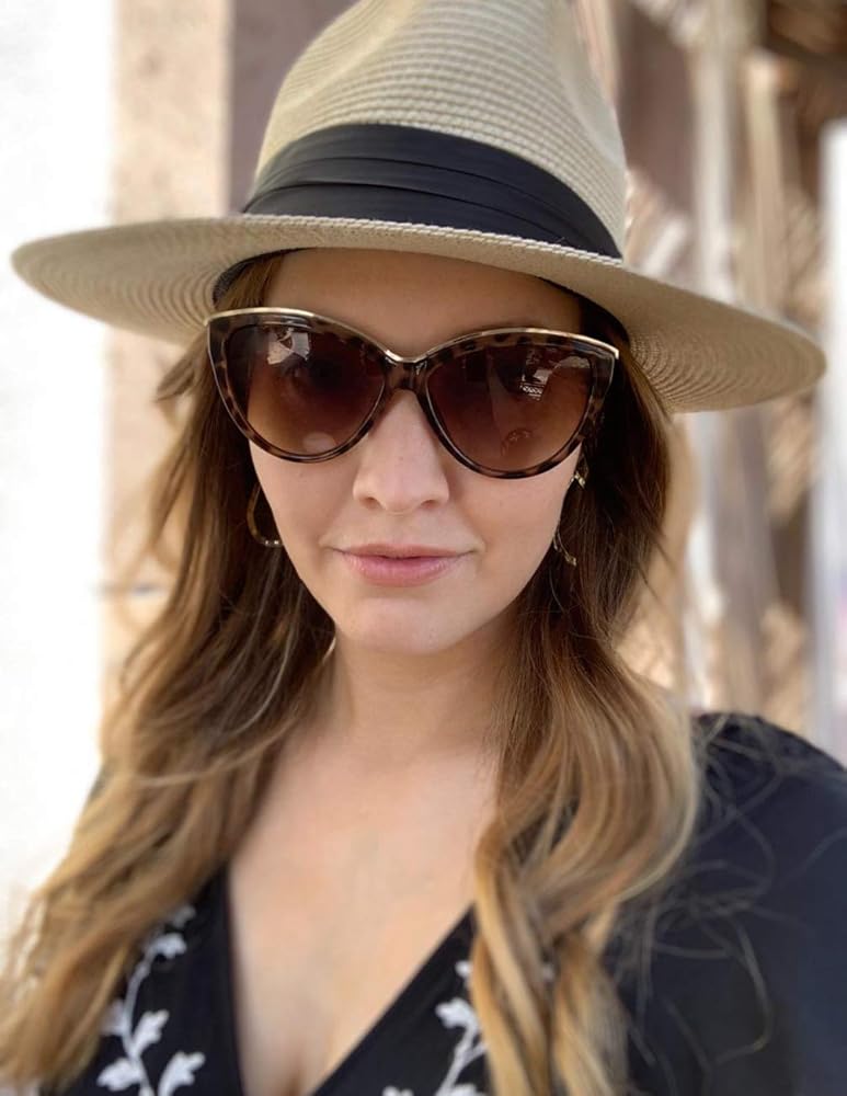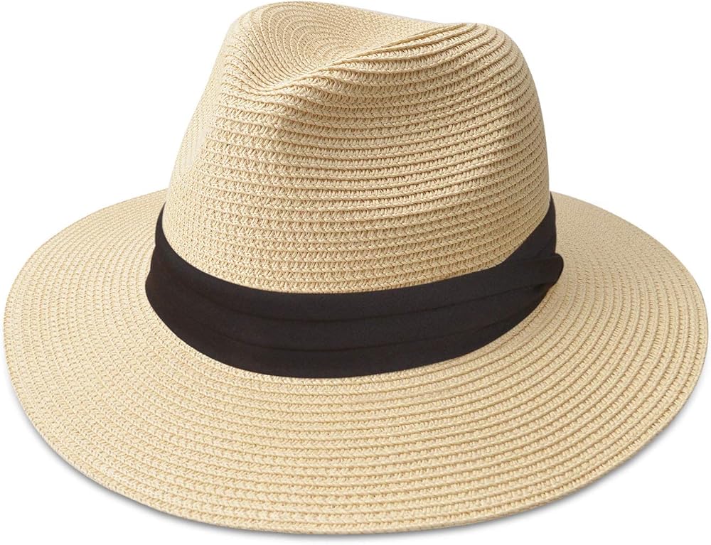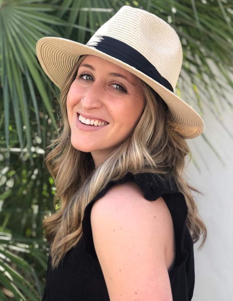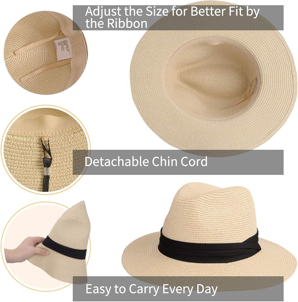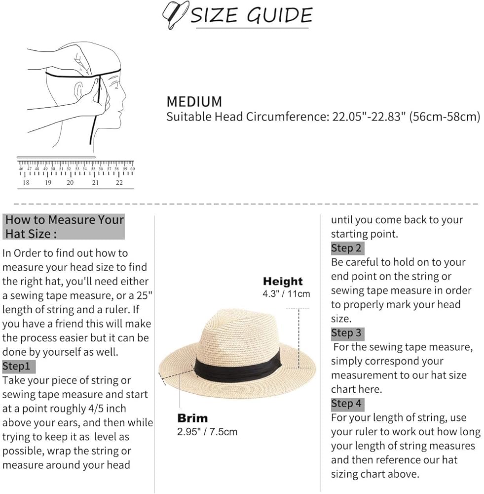 مقاس قابل للتعديل: توفر قبعة بنما للنساء مقاسات مجانية لك، نطاق المقاسات 22.1 انش - 22.8 انش، 7-7 1/4، مقاس واحد يناسب جميع أنواع أشكال الرأس، ويمكنك أيضًا ربط الشريط الداخلي لضبط مقاس قبعة الشاطئ حتى يناسب احتياجاتك.