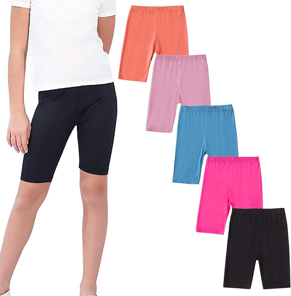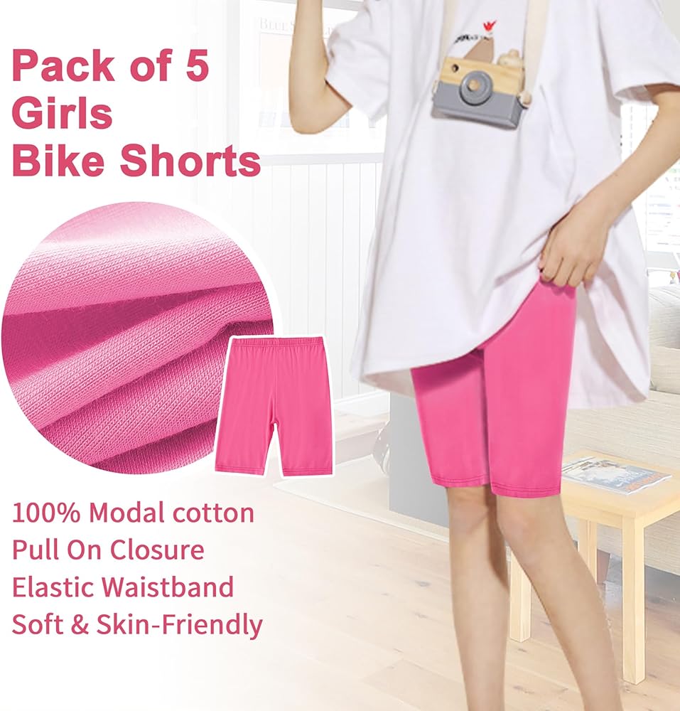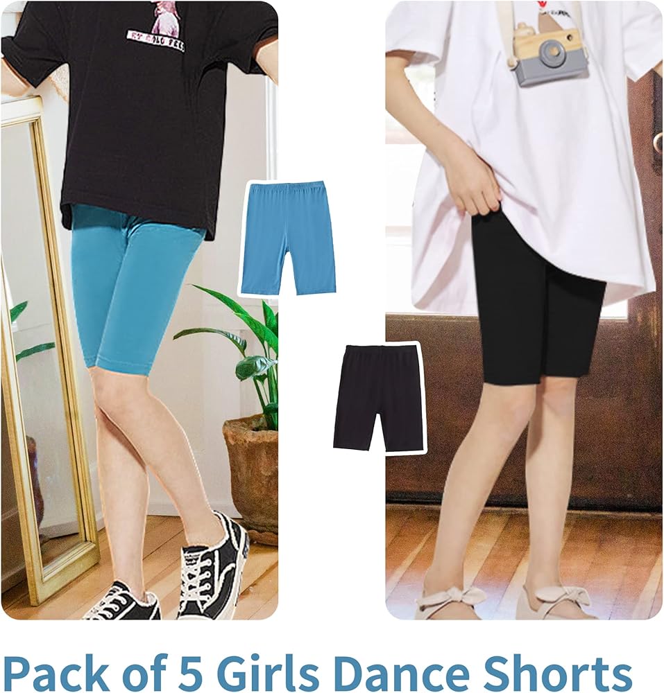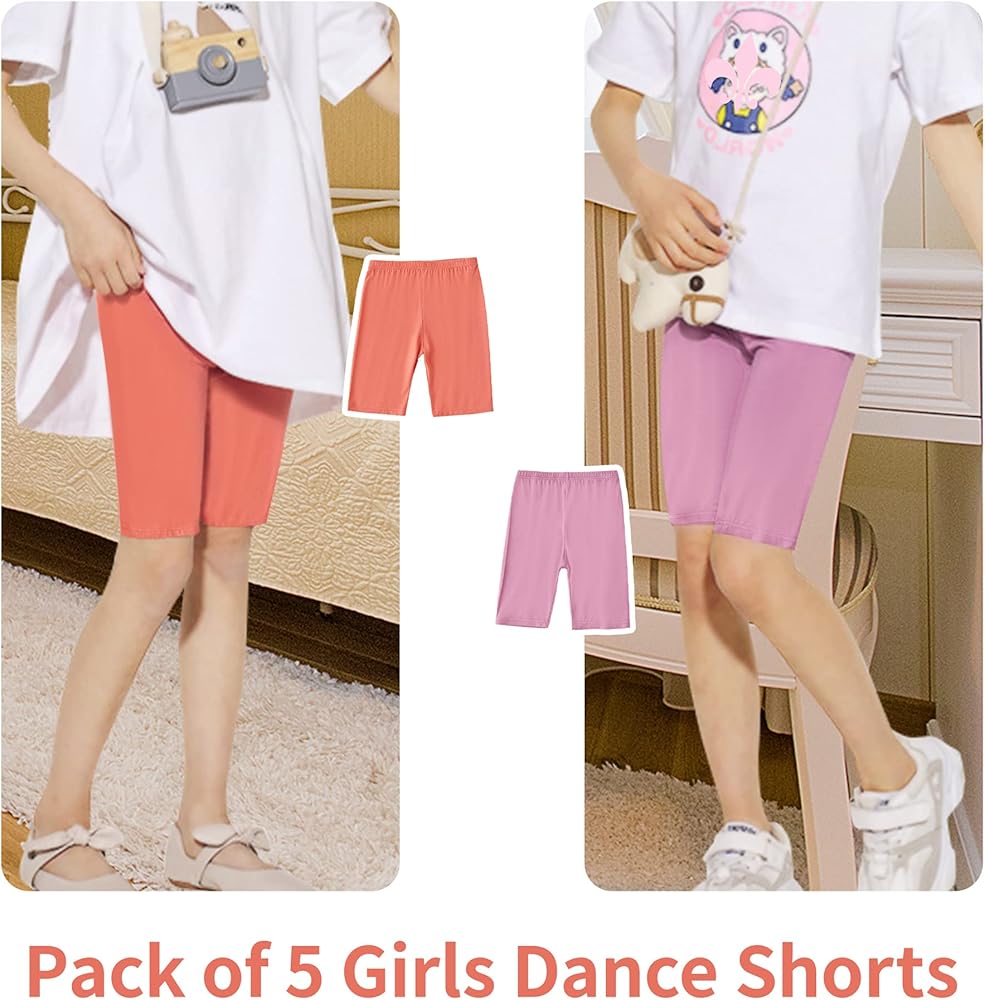 BREATHABLE & COMFORTABLE - These girls bike shorts are made from a super soft modal cotton and spandex blend with good breathability. 95% Modal Cotton + 5% Spandex. Featured with elastic waist that make your kids comfortable and easy to wrap on. Stock-up on her favorite comfy dance shorts with this value-priced girls 5-pack shorts.