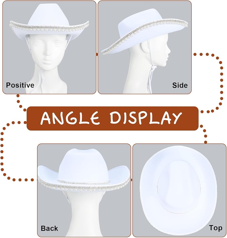 تشمل العبوة: سوف تحصل على قبعة رعاة البقر متلألئة واحدة مع نظارات على شكل قلب. تصميم قبعة راعية البقر النسائية هذا متأصل في ثقافة رعاة البقر ويشيد بروح الغرب المتوحش والمغامرة، بينما تضيف إضافة أحجار الراين واللؤلؤ لمسة عصرية ومبهرة، مما يجعلها قطعة متعددة الاستخدامات لكل مناسبة.