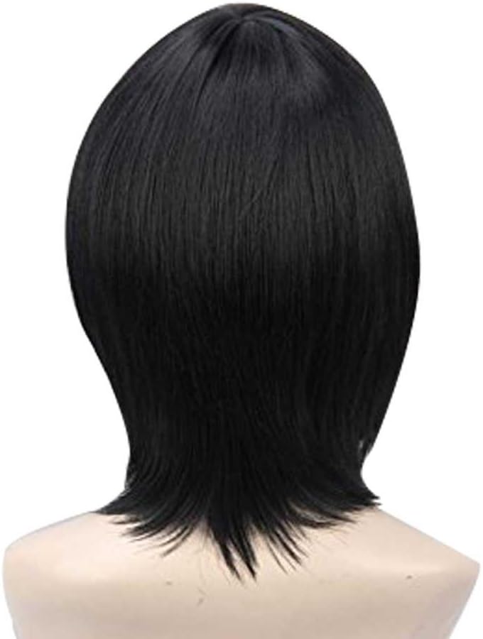 - شعر مستعار أسود قصير للأزياء التنكرية أو الهالوين أو الحفلات التنكرية أو المرح أو الاستخدام اليومي.