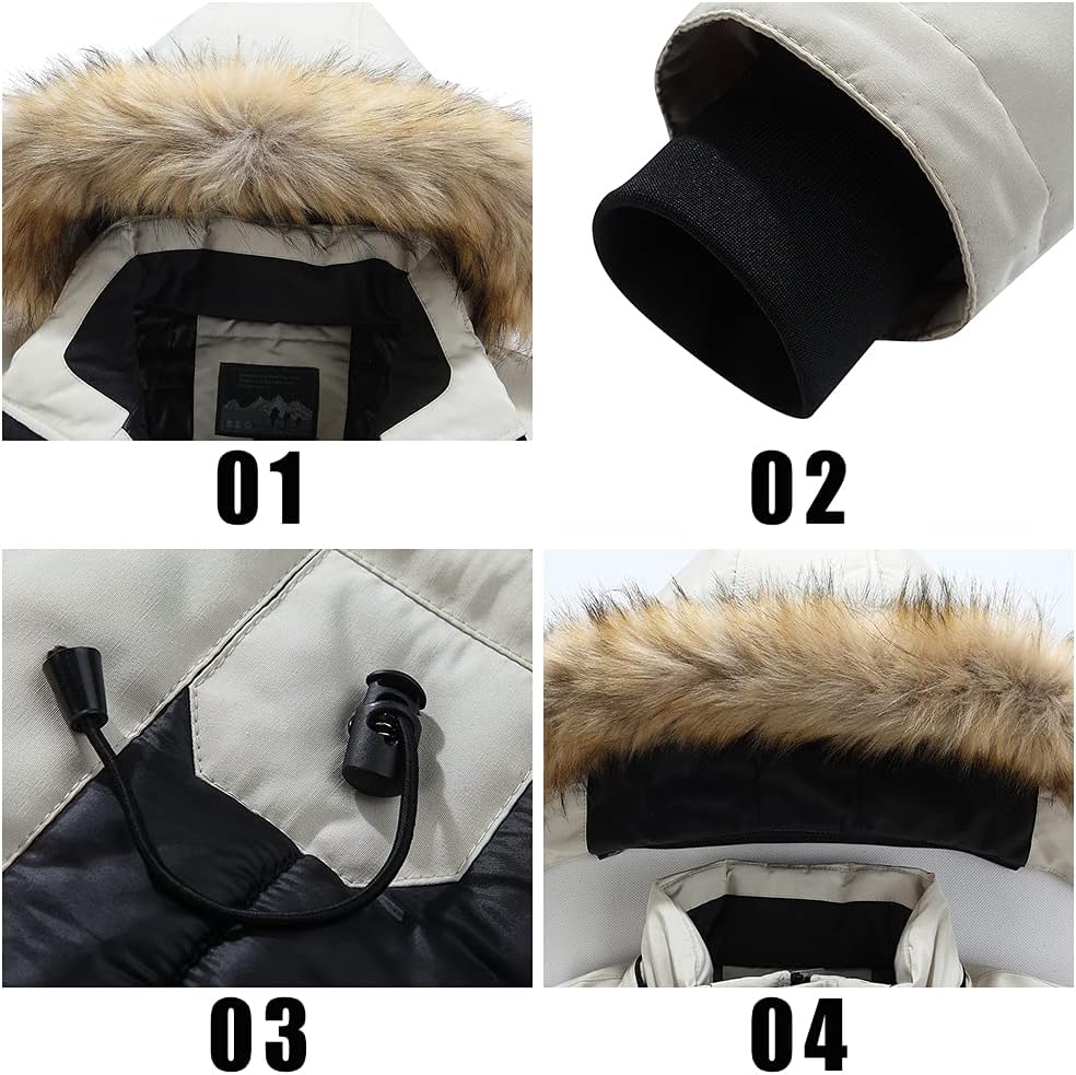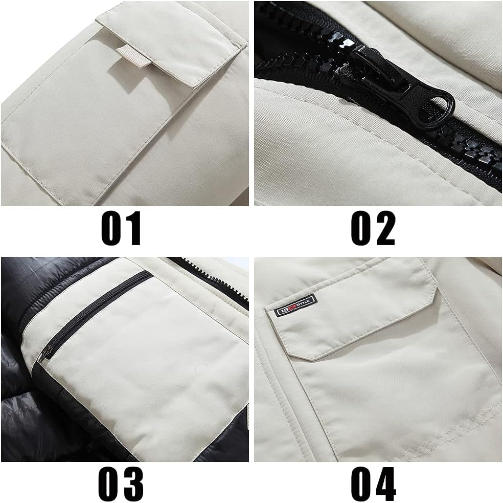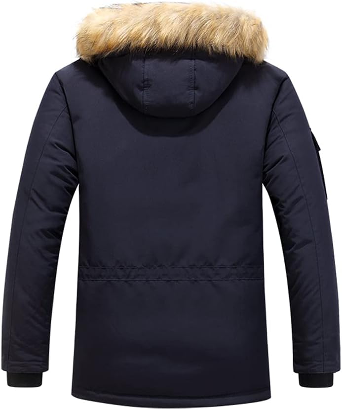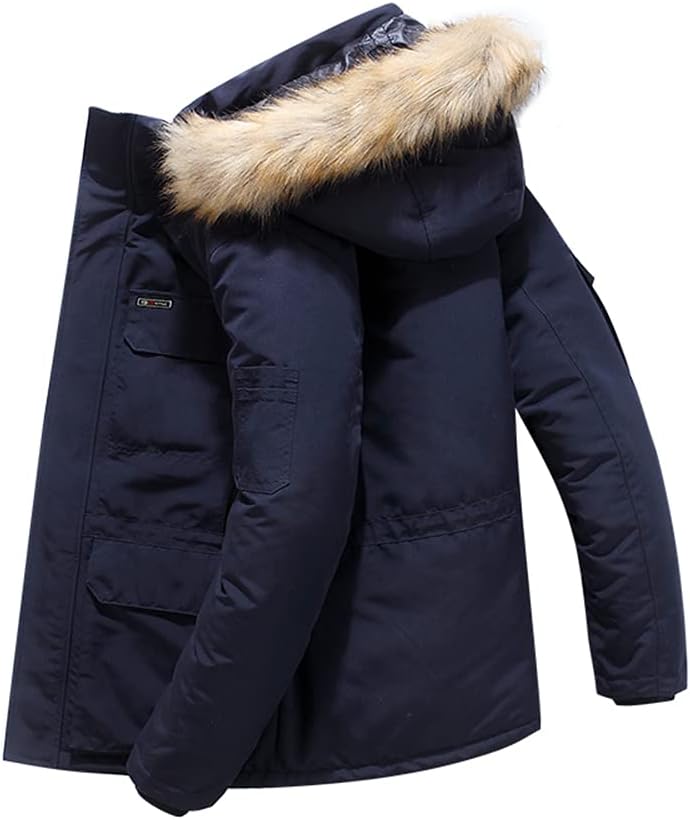 مقاوم للرياح: معطف شتوي رجالي بغطاء للرأس مع فرو صناعي، سحاب أمامي للإغلاق مع تصميم فيلكرو، أساور مرنة يمكن أن تمنع الرياح، مما يجعلك تشعر براحة أكبر في يوم عاصف.
