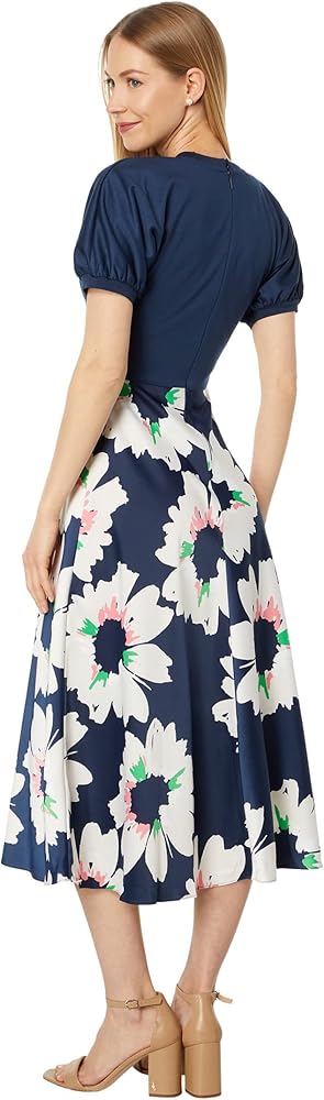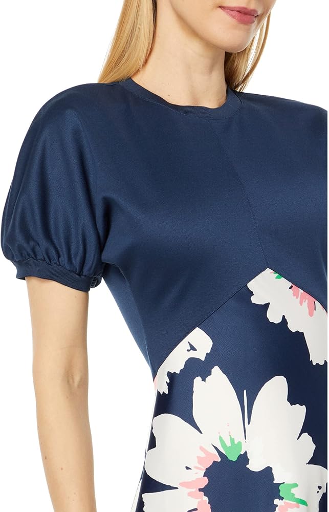 Slay from day to night and mark your style Statement wearing the Ted Baker Daysiah Ponte Top with Midi Skirt Dress. Midi-length dress. Crew neckline and short sleeves with elasticized cuffs. Floral print skirt. Zippered back closure. Upper shell: 96% polyester, 4% elastane;Lower shell: 97% polyester, 3% elastane. Hand wash.