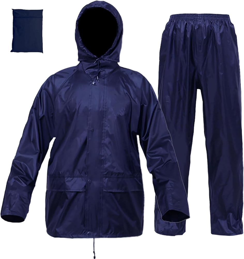 سترة/بنطلون المطر المقاوم للماء من RainRider مثالي للعمل اليومي، وصيد الأسماك، والمشي لمسافات طويلة، والمطاحن، وبناء الطرق، وحصاد الأخشاب، والزراعة، والتعدين، وأحواض بناء السفن، والغابات، والمرافق، والصيد، ومعالجة الطعام وما إلى ذلك. إنه رائع لجميع المناسبات للارتداء.
