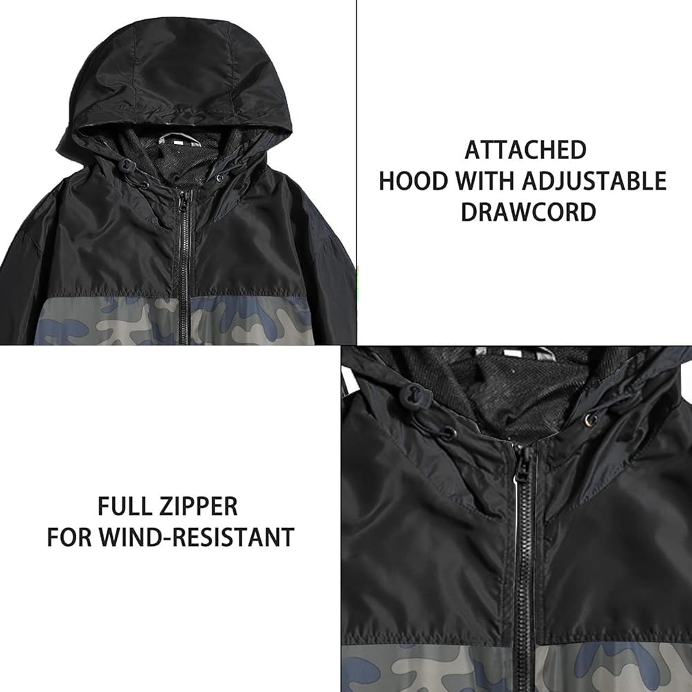 سترة واقية من الرياح خفيفة الوزن: سترة واقية من الرياح للرجال منسوجة من أقمشة خفيفة الوزن ومقاومة للرياح، مما يضمن ملاءمة مريحة دون إرهاقك. يسمح بالحركة غير المقيدة حتى في المطر الخفيف.