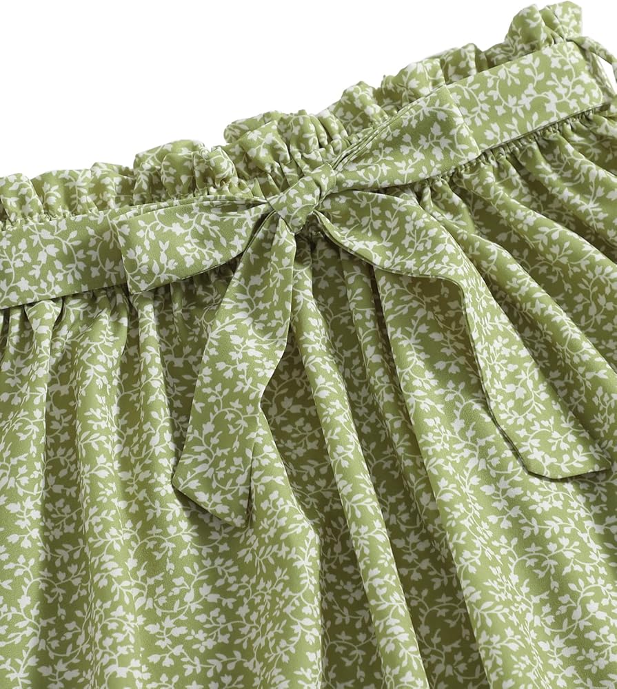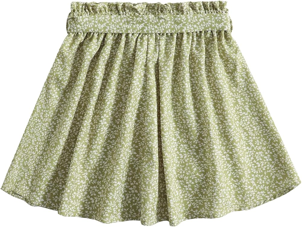 تنورة قصيرة على شكل حرف A من Milumia Girl's Boho Ditsy Floral Paperbag الخصر وعقدة أمامية وحزام على شكل حرف A