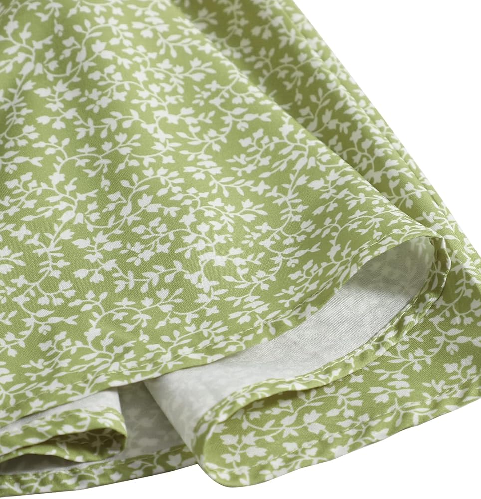 - الميزة: خصر ورقي، طباعة زهور Ditsy، تنورة قصيرة، خصر مرتفع، خط، انسيابي، واسع، حزام، عقدة أمامية، تنورة بوهو للفتيات