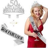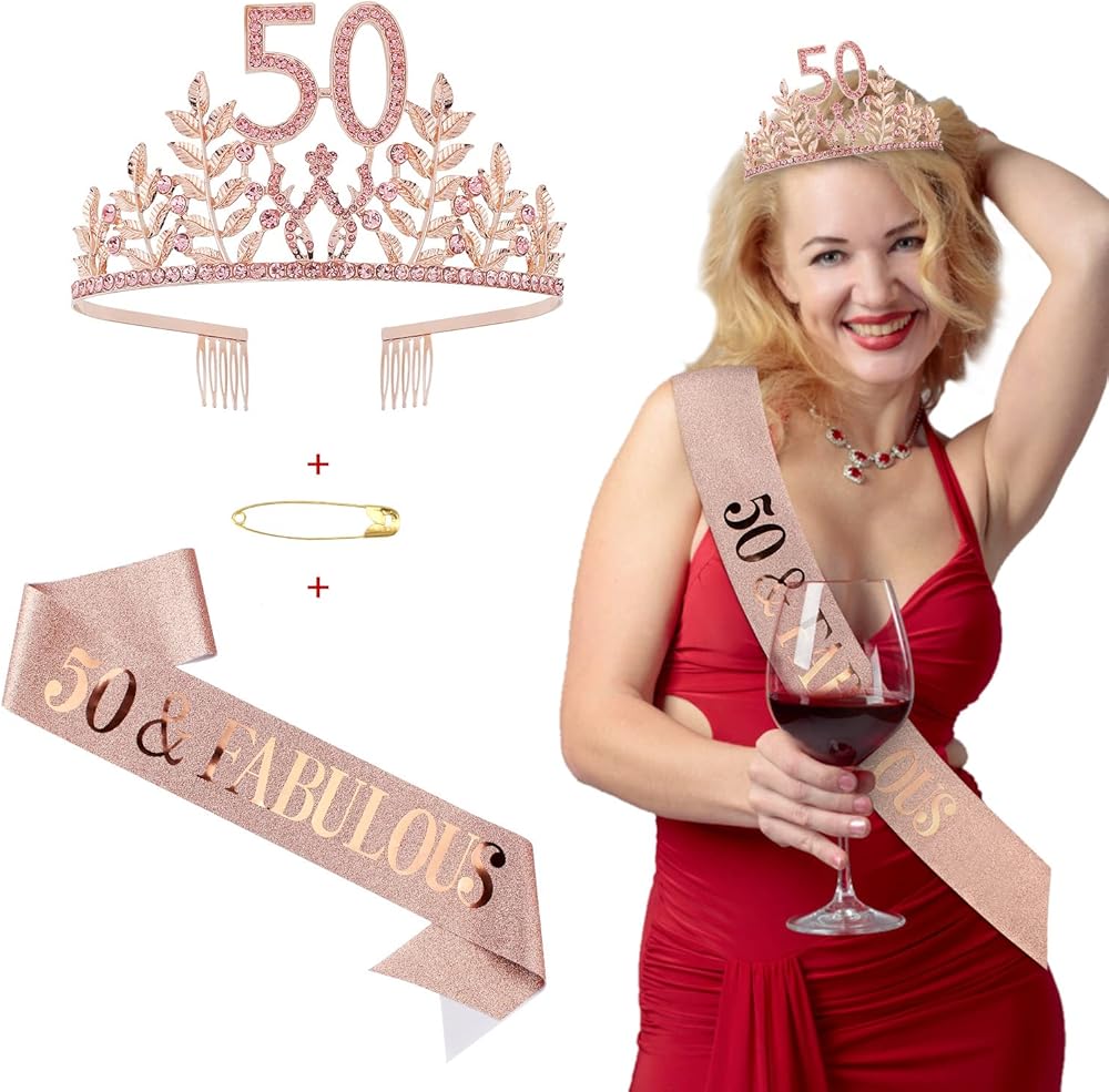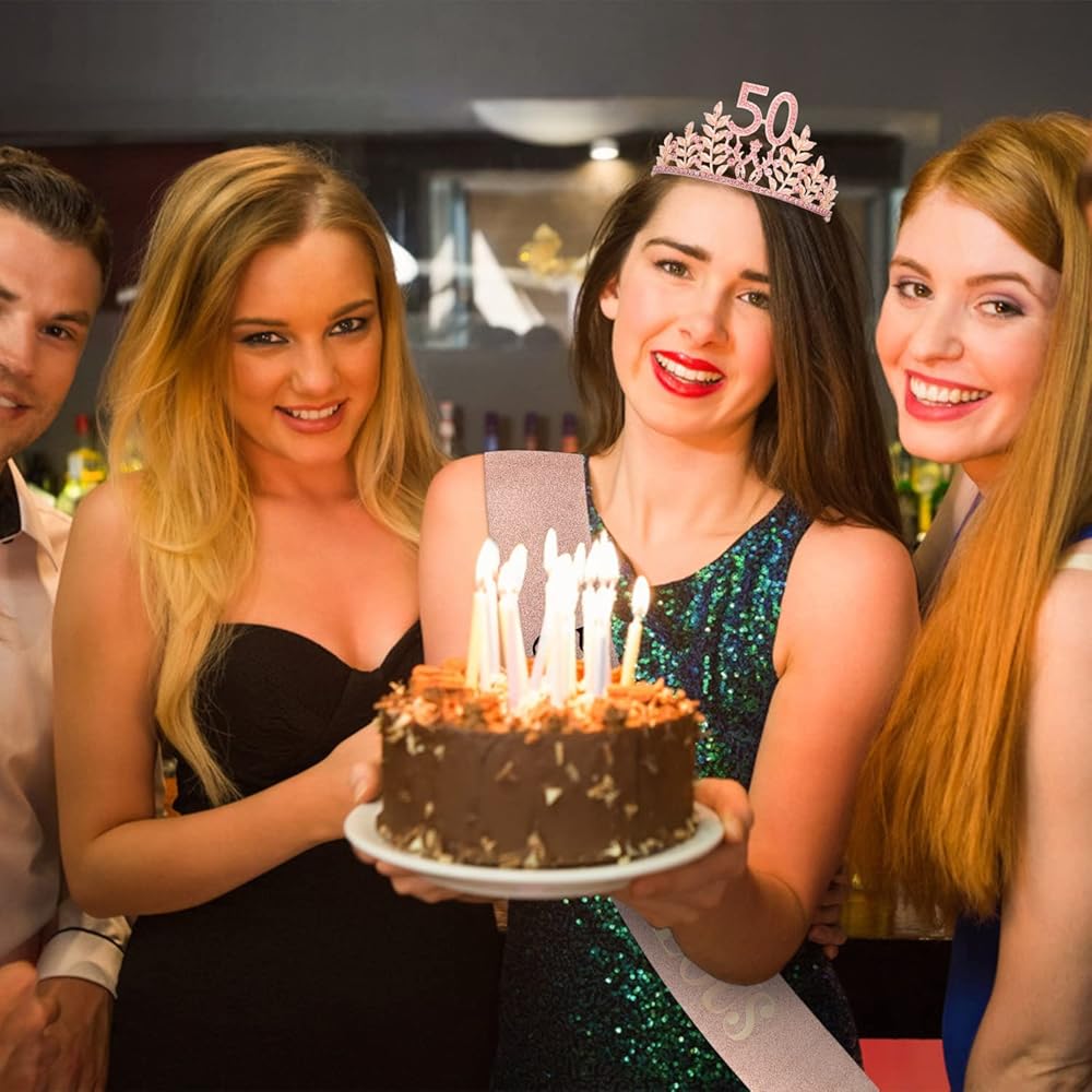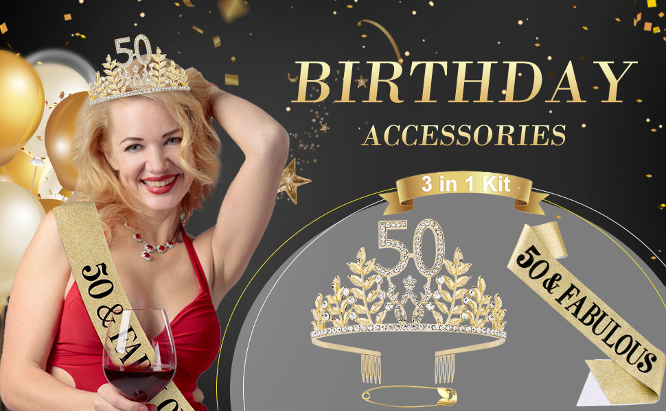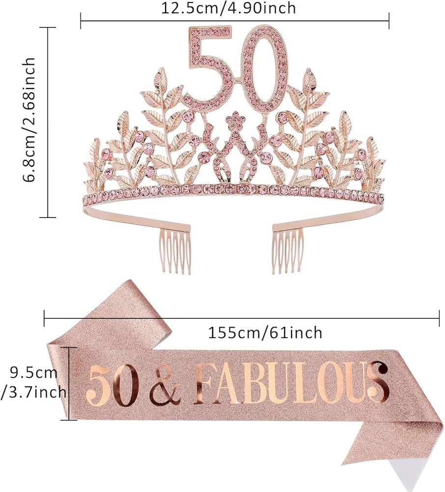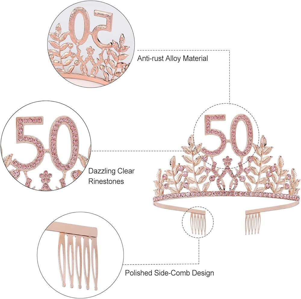 • 【هدية مثالية】 مجموعة التاج هذه هي هدية رائعة لعيد الميلاد الخمسين للنساء اللاتي سيبلغن 50 عامًا. التاج الذهبي اللامع يجعلك أنيقًا وفاخرًا. إنه رائع لديكورات عيد الميلاد الخمسين. هدية مثالية لعيد الميلاد الخمسين لحبيبتك وأختك وعائلتك وصديقك ولنفسك.