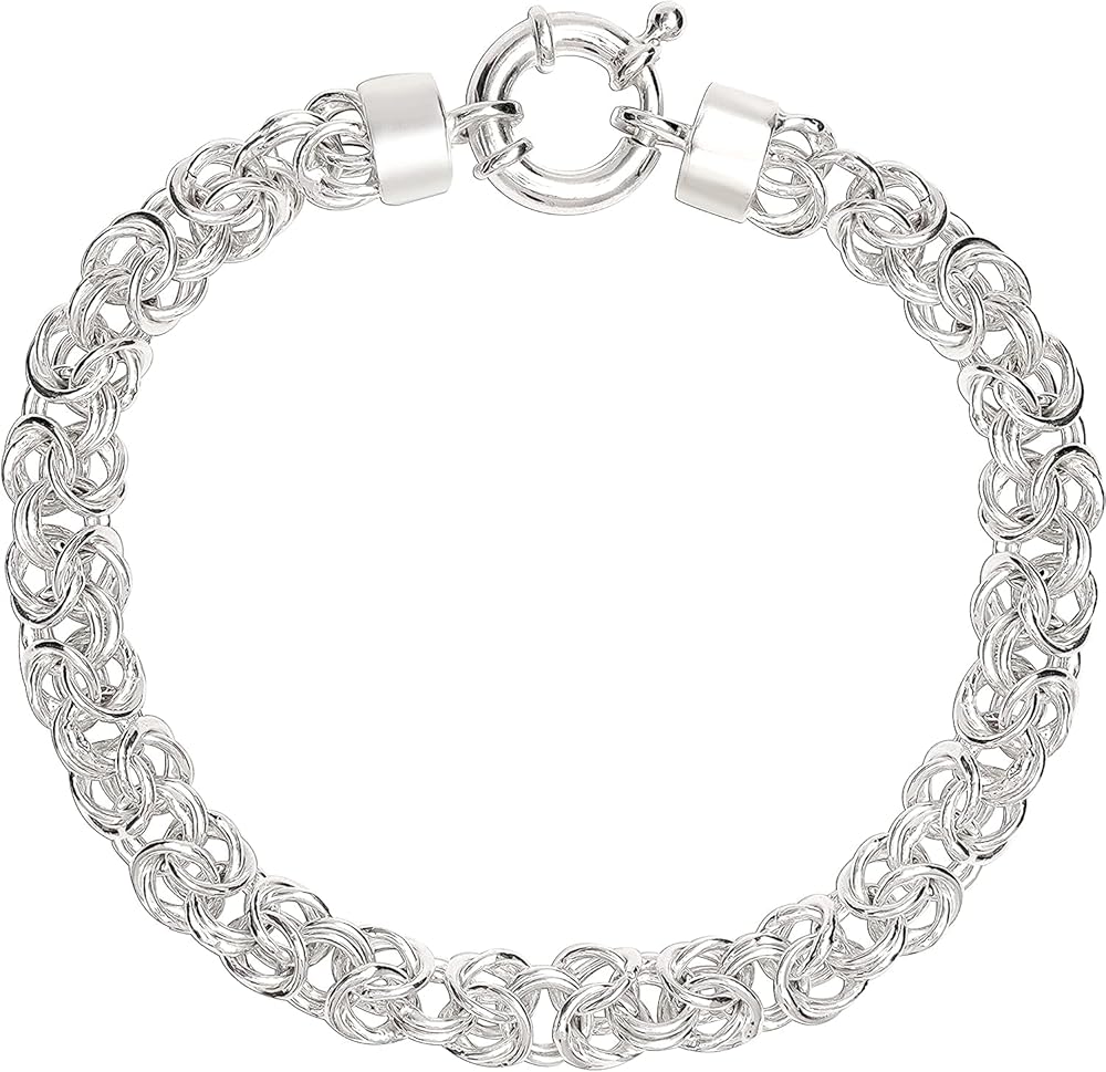 سوار سلسلة بيزنطي من الفضة الاسترلينية العتيقة من تشارمزي مصنوع يدويا من نسج وانماط متشابكة للنساء والمراهقين | 8 انش
