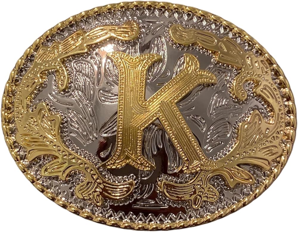 مشبك حزام غربي بحرف حرف K كاوبوي روديو بلون ذهبي للرجال والنساء، لون ذهبي، مقاس M, ذهبي