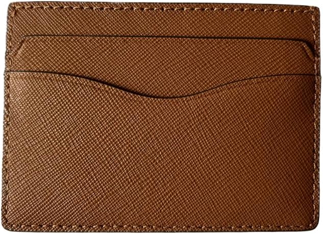 جلد سافيانو جديد بملمس ناعم. نحيف/صغير بما يكفي لجيب من الجينز وسراويل التمرين. سجل مزدوج على شكل حرف T مطلي باللون الذهبي و4 فتحات خارجية للبطاقات وفتحة واحدة مركزية للبطاقة.