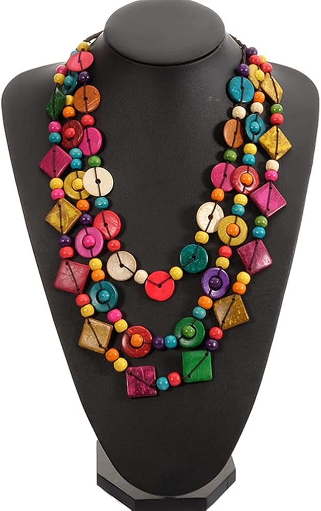 🔥This Statement Colorful Round Wooden Beads Chain Shell Necklace is a great addition to a gift or jewelry box.